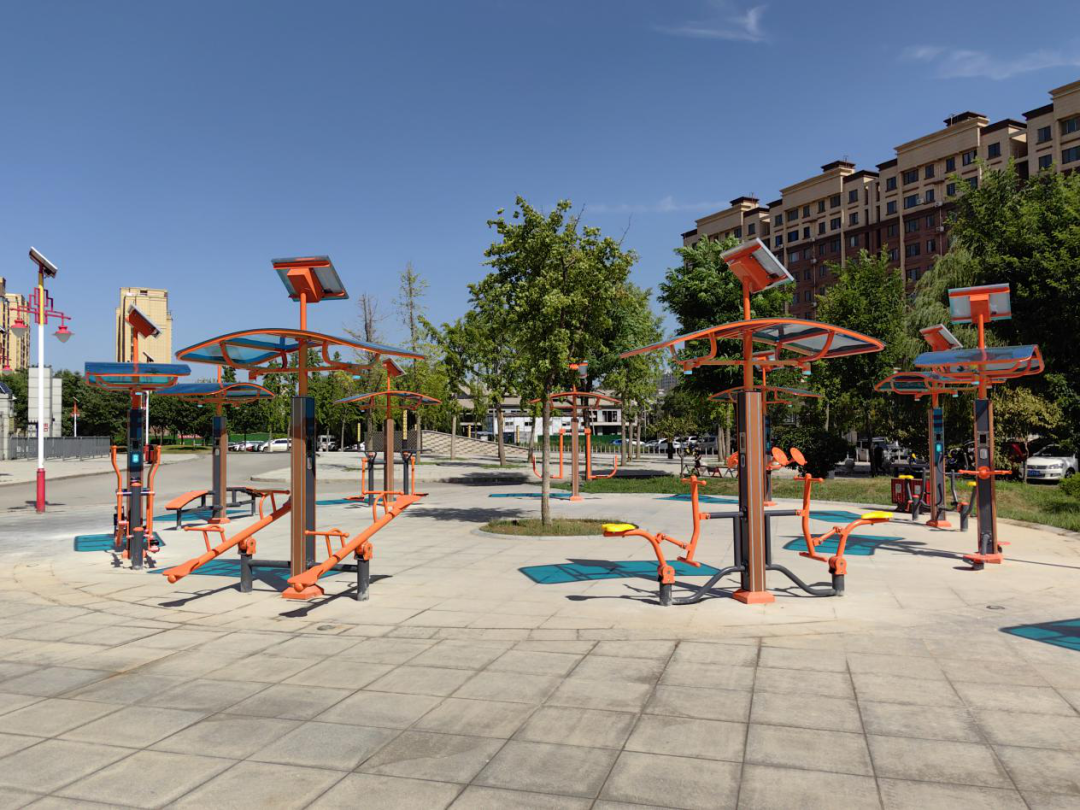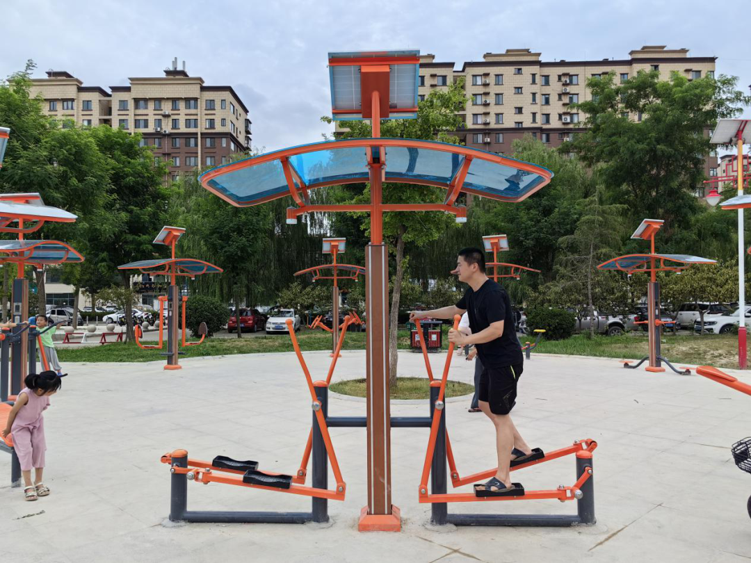 郓城县首批智能健身器材包括双位漫步机、双位椭圆机、双位仰卧起坐板、双位跷跷板等,可以满足不同年龄段的健身需求。利用大数据平台和智慧社区平台人口基础数据和居住、年龄结构等数据,在体育中心、“三馆一场”、南湖公园等公共区域累计部署智能器材69件。每个健身器材顶部都安装了一把大“伞”,顶部装有太阳能电池板,随时为健身器材运行提供能量,在节能环保的同时,还能遮阳避雨,伞的内部还装有LED照明灯,方便居民晚上进行锻炼。