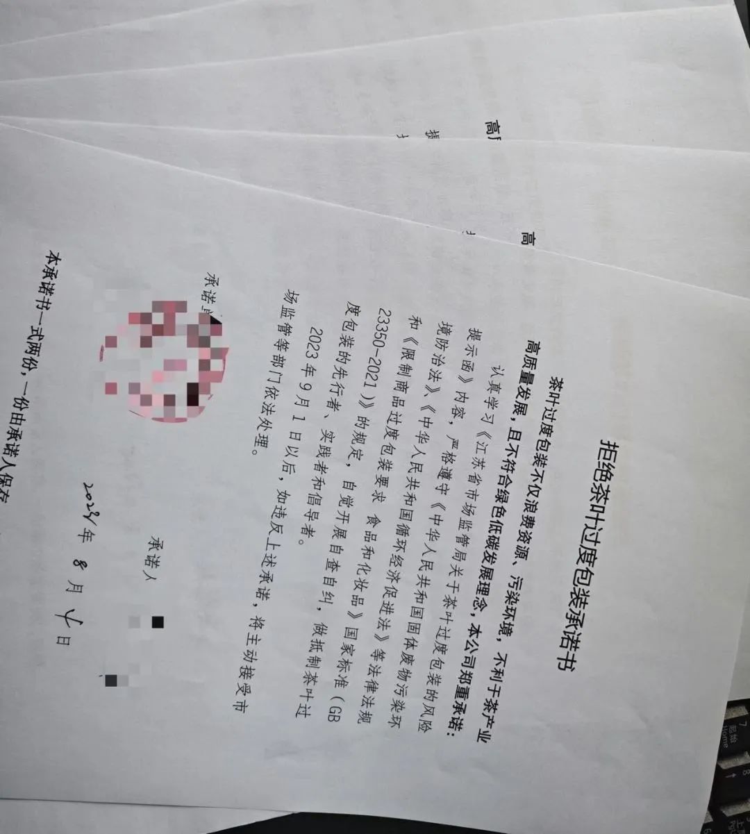 此次宣传活动主要面向茶制品生产企业和小作坊,我局工作人员组织全区茶制品生产单位就茶叶产品在生产环节是否有过度包装问题进行了重点宣贯,引导企业自查是否存在“盒比茶贵”的情况,严控包装空隙率、严控包装层数和严控包装成本造成的过度包装,并要求生产者严格执行索证索票制度、建立健全进货查验制度。工作人员还主动向经营者宣传普及限制商品过度包装的重要意义和相关要求,提示生产者要高度重视过度包装问题,确保茶叶产品包装合法合规,让茶叶包装“瘦身”、“轻装上架”,实现绿色消费。本次宣贯全区4家茶制品生产单位、2家小作坊均到场参与,现场发放宣传材料6份,参会单位现场签署了拒绝茶叶过度包装承诺书。