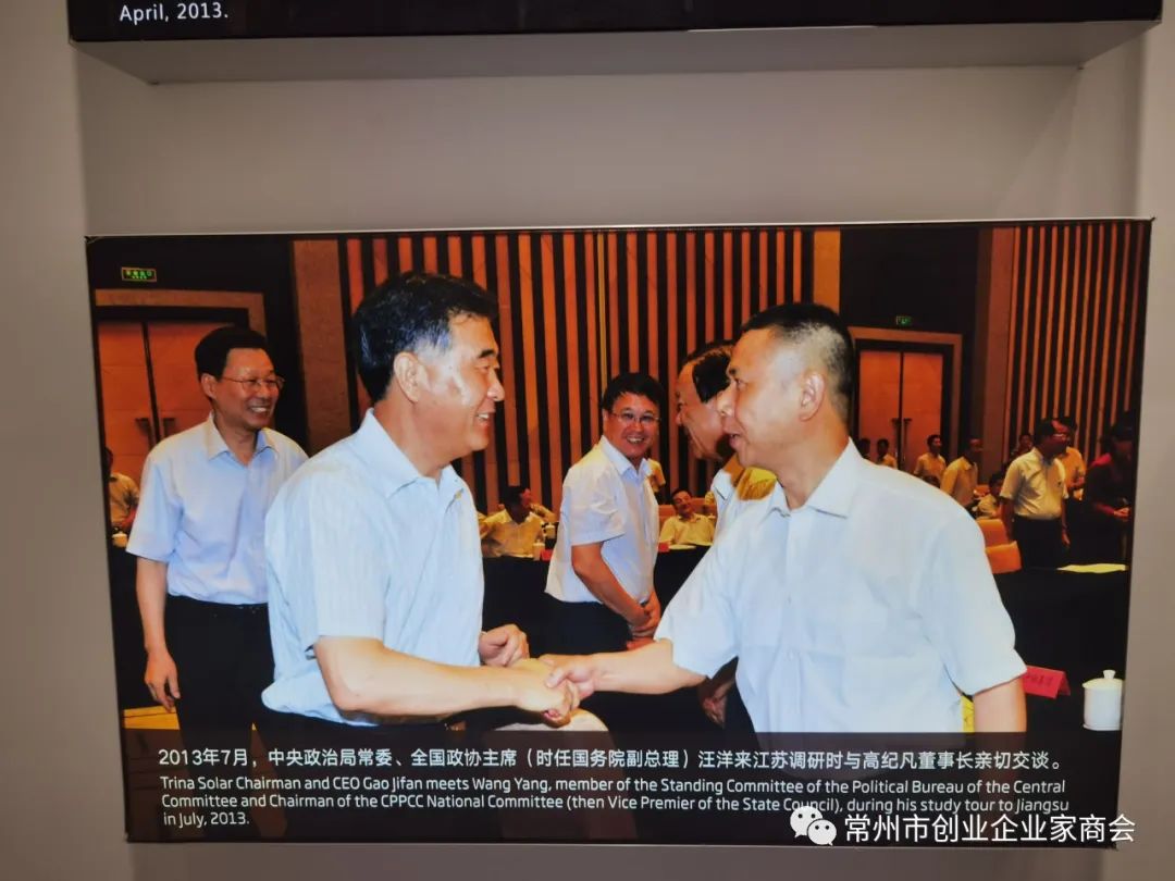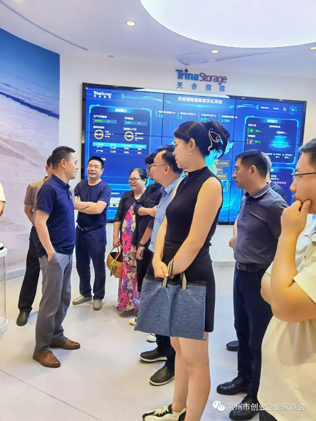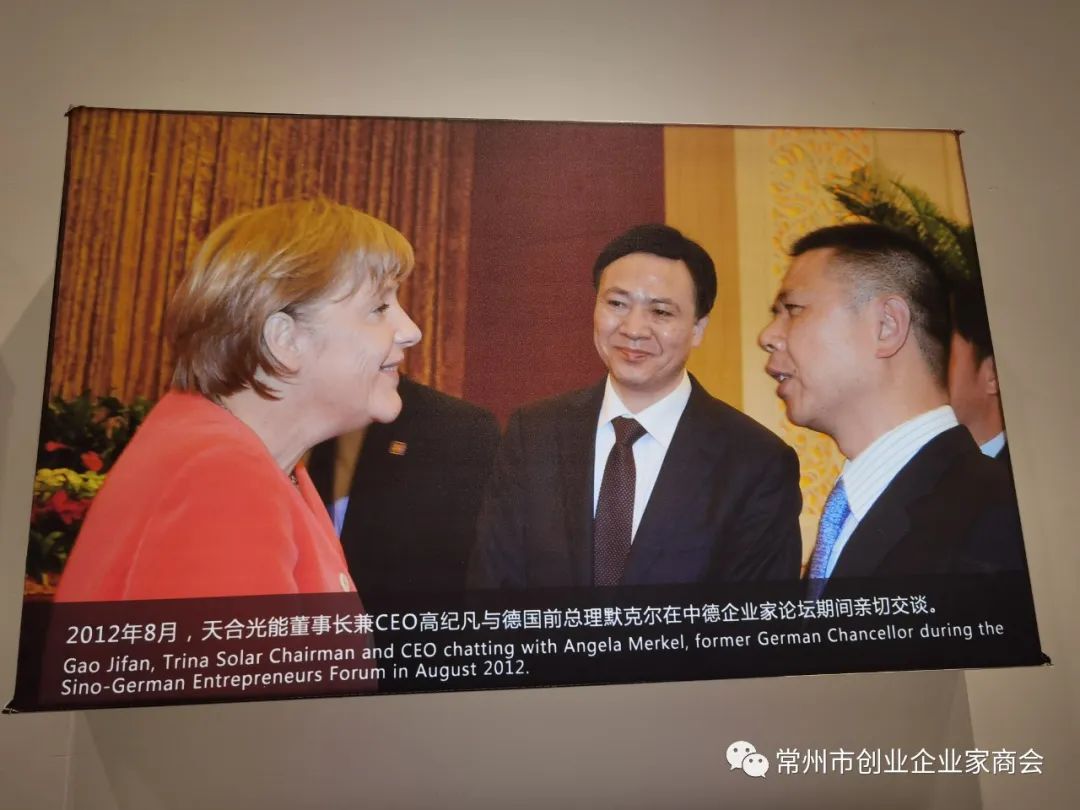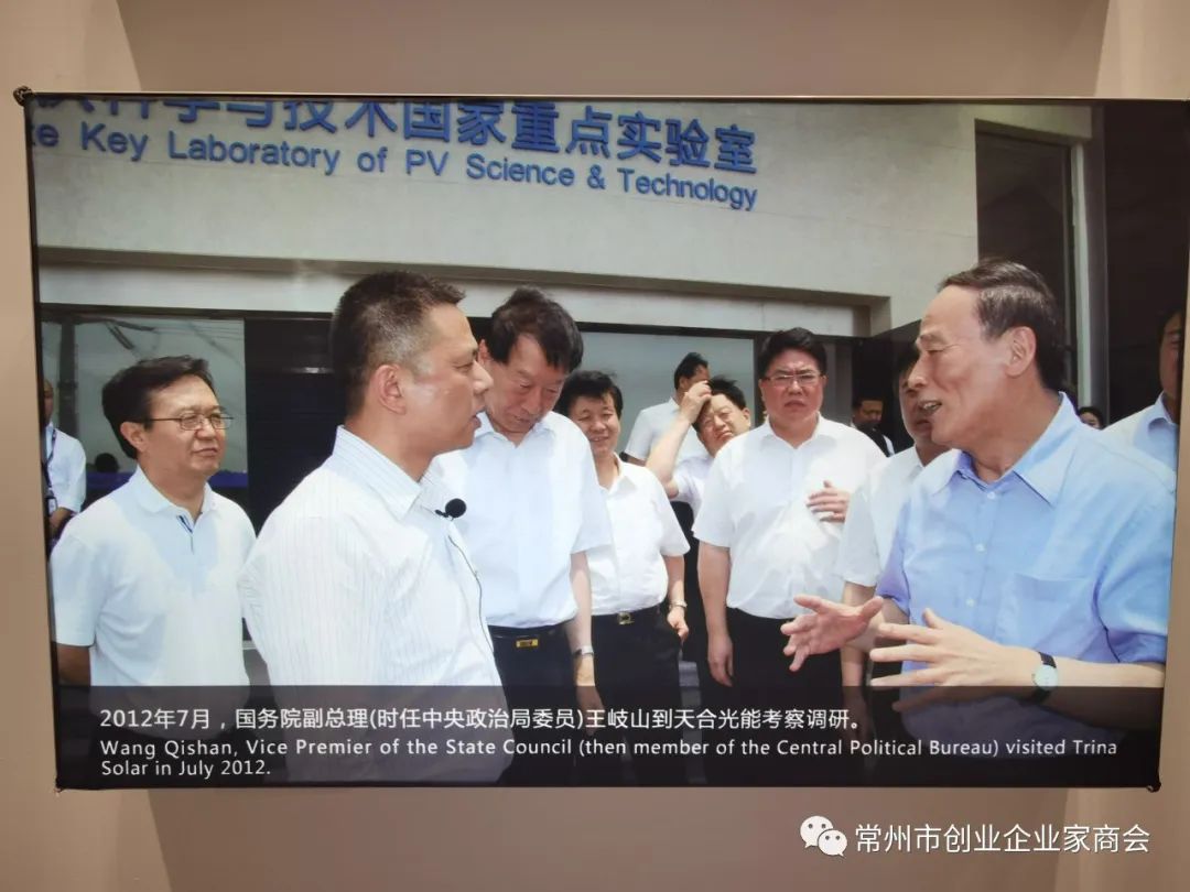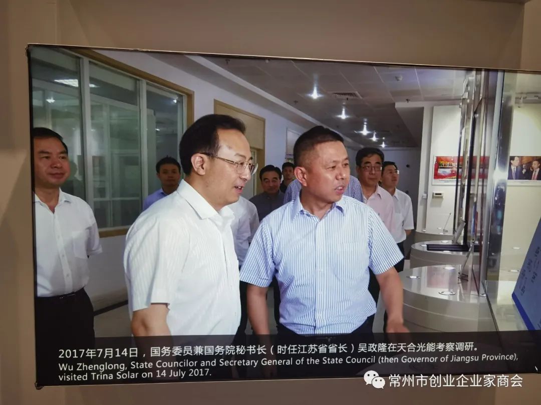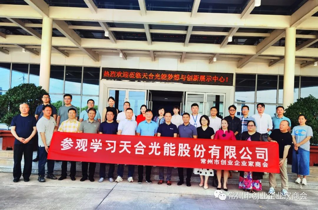 为响应常州市委市政府打造新能源之都和冲刺万亿之城的号召,经常州市工商联朱明芳处长协调,8月3日下午,由会长袁柏强带队,执行会长顾华庆,常务副会长秦强、赵雪雅,副会长蒋坤,监事张迎春,理事臧其准、徐睿韬、周亚平、张洋、周文妹、刘章俊、谈洁,会员钟林、汤巧玲、杨杰、宁晟君、张理平、韩业兰及秘书处等一行近30人,来到天合光能股份有限公司总部参观学习和考察交流。在展厅门前,商会一行人受到天合光能高级副总裁高纪庆的热情欢迎和亲自陪同参观。来到展厅,大家看到的是天合光能从初创到现在的光辉发展历程。在讲解员引领下,大家进入各个展厅倾听讲解员的专业讲解,看到了各种场景下的对太阳能的开发利用和深度研发。大家边走边听边问,高纪庆高级副总裁对各种问题一一做着讲解和回答。