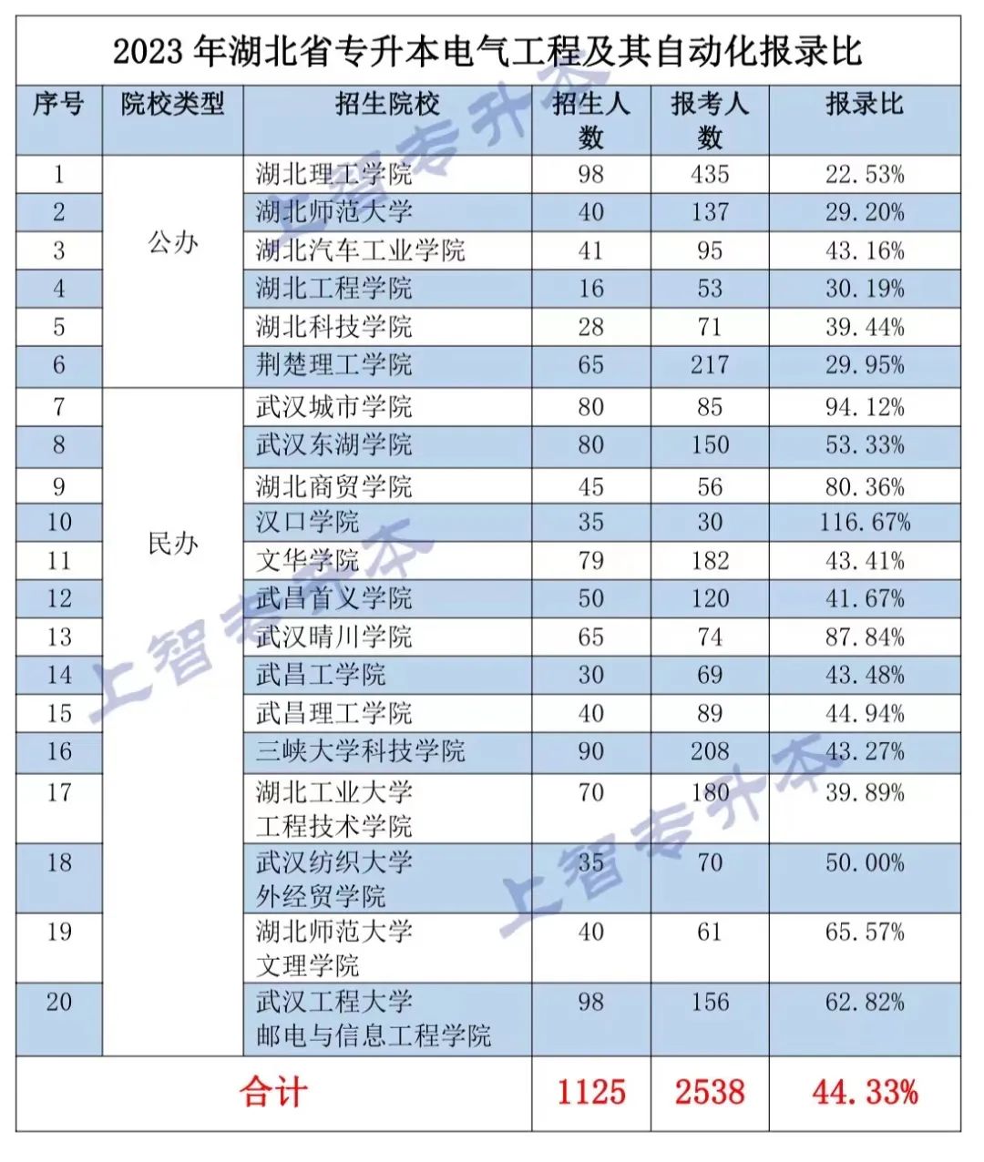 在2023年湖北专升本考试中,共有20所院校招收电气工程及其自动化专业。其中公办院校6所(序号1-6),民办院校14所(序号7-20)。