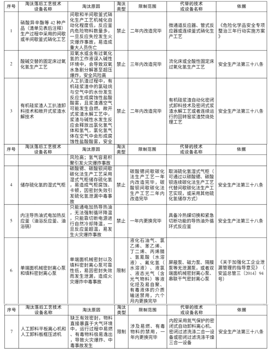 淘汰落后危险化学品安全生产工艺技术设备目录