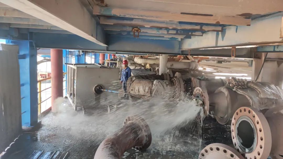 19:30,在高压清洗班全体职工的共同努力下,经过12个小时抢时间、抓进度的鏖战,所有管道的清洗任务完成并交付检修班组进行回装,确保了整个E组倒组检修的顺利推进和圆满完成。