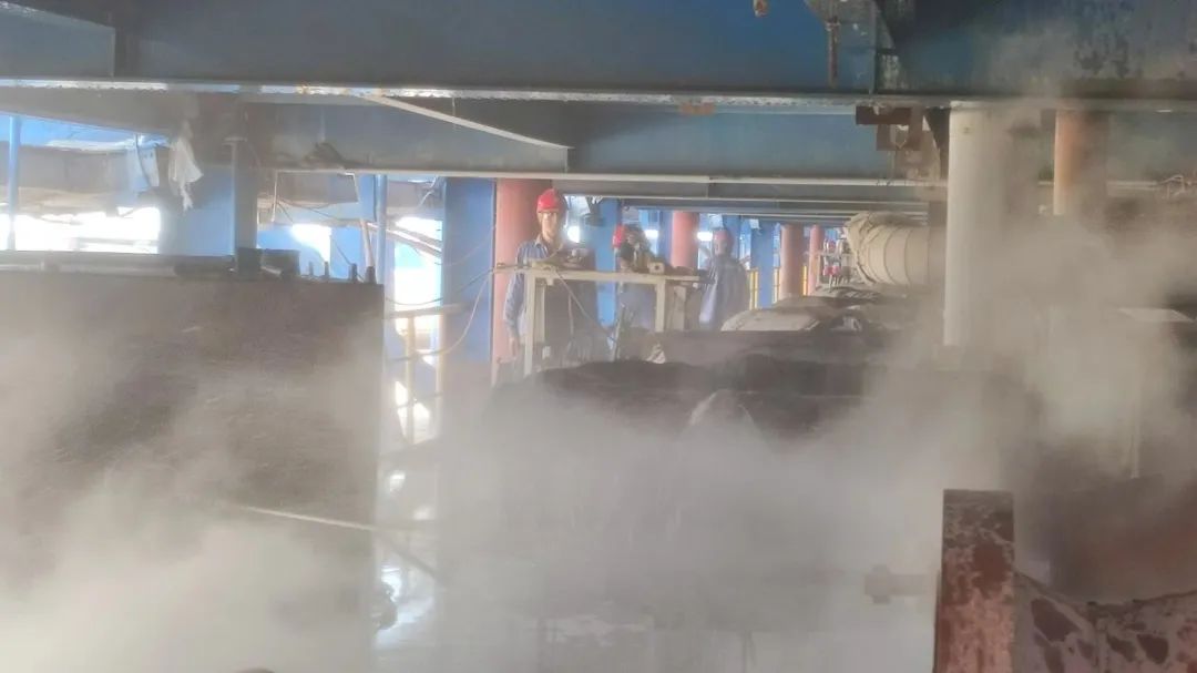 7:30,随着各层管道陆续具备清洗条件,清洗班人员立即投入到紧张的管道清洗工作。五台高压清洗机开足马力轰鸣着,为管道清洗提供源源不断的水流,操作人员操作着油泵站,控制旋管器把高压软管一点点送入管道内部,喷头喷射出的高压射流水强力冲击着管道内壁的结疤使之逐渐脱落,随着高压软管的深入,一股股裹挟着结疤的热水伴随着蒸汽不断涌出,塔架各层水汽弥散,水流潺潺。