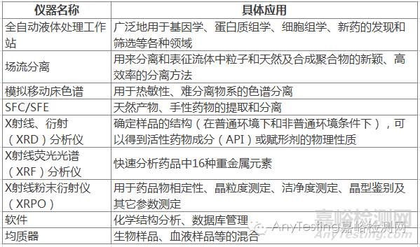 序号 仪器名称 具体应用