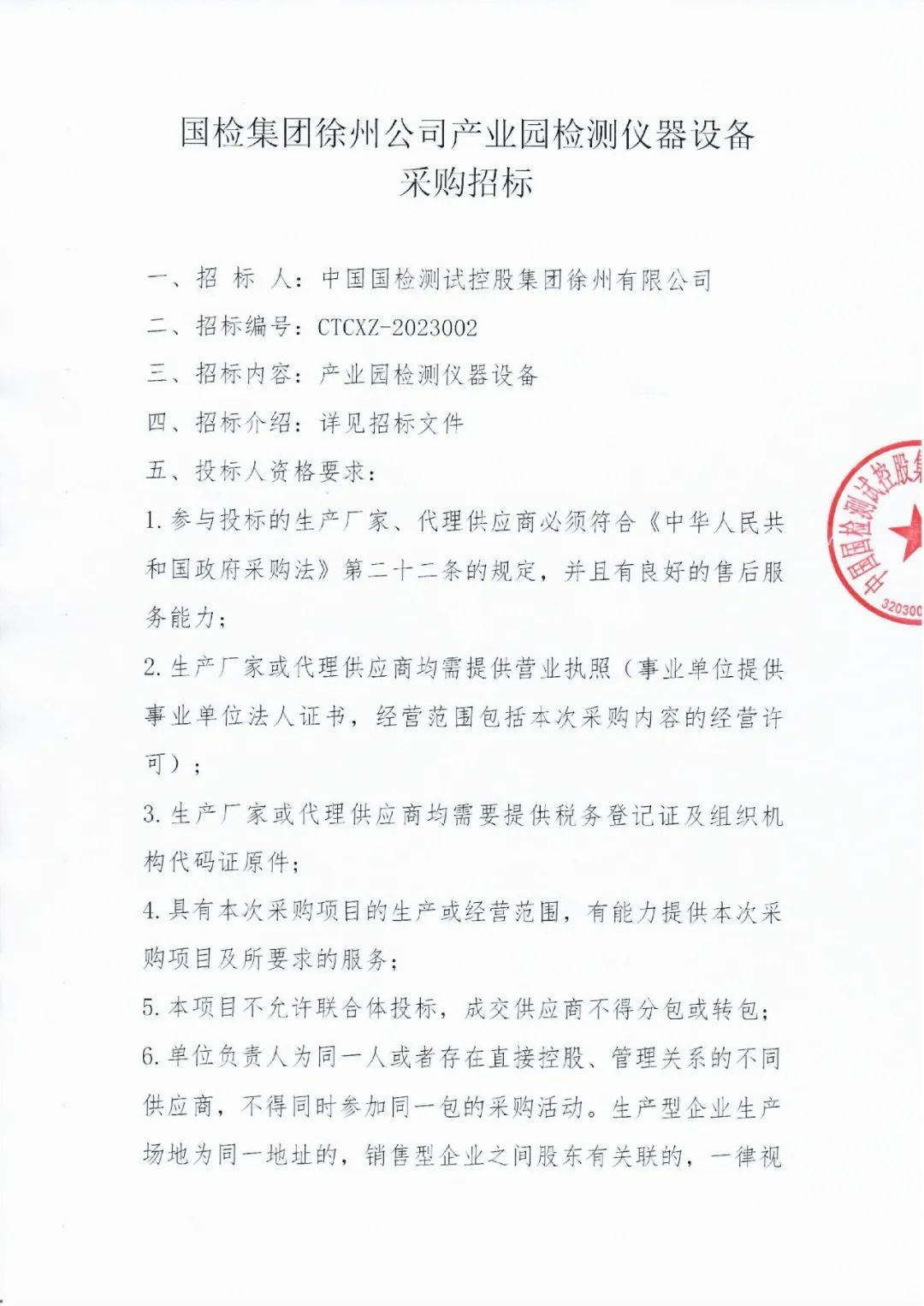 国检集团徐州公司 | 产业园检测仪器设备采购招标公告