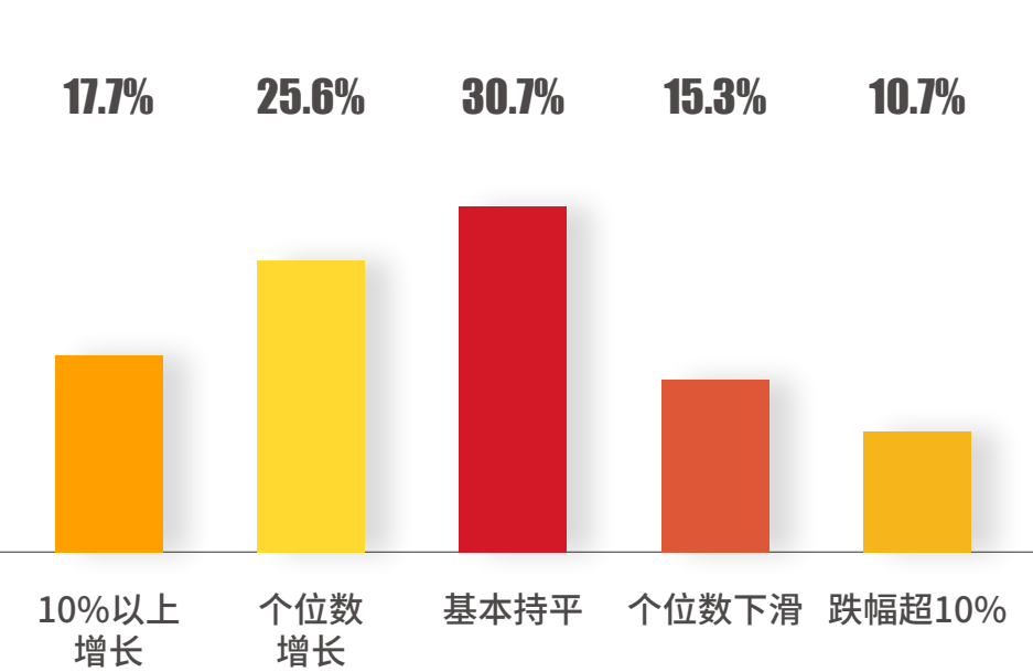 与此同时,绝大多数的企业认为2023年上半年的市场实际发展情况远不及预期,特别是去年对于整个行业有巨大推动作用的外销市场在上半年中遭受重创,行业整体对于今年下半年的外销市场也持有悲观的态度。从内销的结果以及企业自身的情况来看,持平与微增还是整个行业的发展主旋律,仅有不足1/3的受访者认为2023年上半年总体市场处于增长状态,这样的结果虽然有点出乎意料,但也在情理之中。