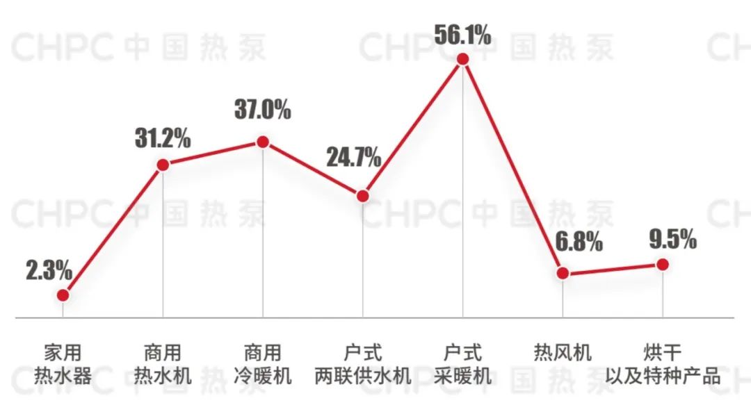 调查结果显示:空气源热泵户式采暖机、商用机产品依然是上半年表现最为突出的产品。在这里则不得不提及到空气源热泵家用产品以及热泵热风机产品,因为多种原因的综合之下,整个房地产行业在2023年上半年出现强烈震荡。作为与其息息相关的热泵热水器产品,在上半年的表现更加令人悲观。家用热泵热水器零售市场的低迷已经持续多年,从2022年伊始又有一些头部企业开始退出在精装房楼盘配套的操作,行业现状加之市场现状的共同作用,热泵热水家用以及配套产品的市场恢复还需要非常长的时间。