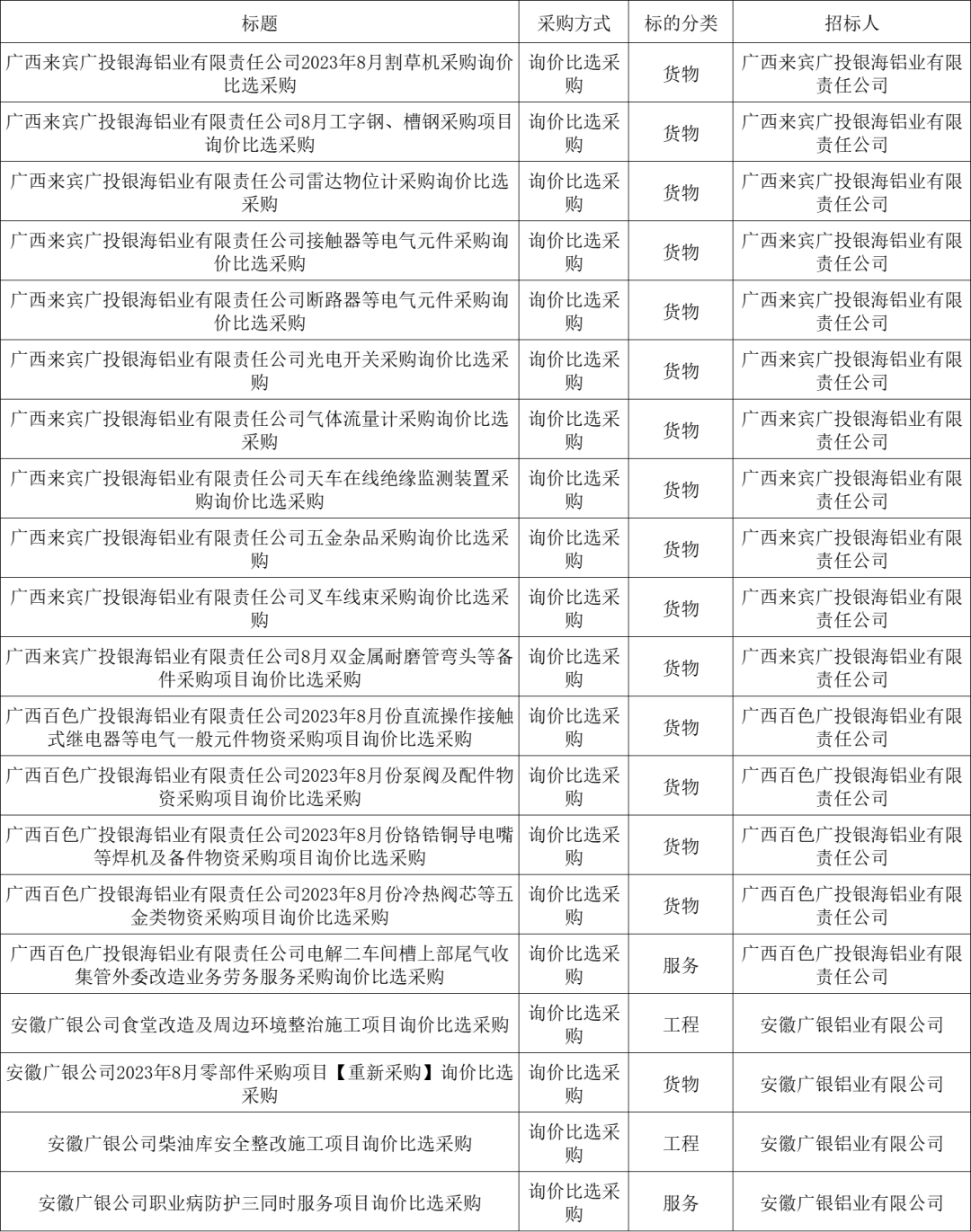 ●招采信息丨广投集团电子采购平台招标采购信息(8月3日)