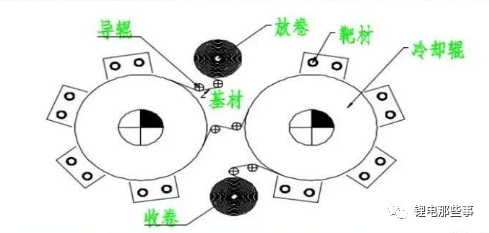 第二步:真空镀膜。使用镀膜氧化铝的物料作为基膜,使用物理气相沉积方式(Physical Vapor Deposition), 真空设备控制真空度<2×10-2Pa,使用蒸发舟作为铝的蒸发载体向 高温的蒸发舟上送入铝丝,加热方式为电加热,利用热传导的方式在 950-1000℃的条件 下,使固态铝转变为气态铝,气态铝原子的平均自由程大于蒸发源和基体(AL 后物料)之 间的距离,而后沉积到基体表面,形成具备特殊性能的金属铝薄膜,厚度一般为 800-1000nm,膜面导电性可达到 40-30mΩ。整个镀敷过程在真空室内进行,且膜面背面 紧贴通入-20℃至-30℃冷却液的钢棍,使膜在受热的同时可以进行急速降温,使分子迅速凝结在膜面,通过控制冷却液钢棍的温度保证膜面温度可始终保持在膜热熔温度以下,不 会使膜发生形变。