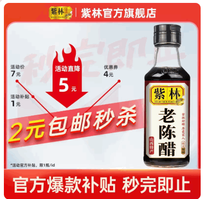 今天觉得最值的是紫林官方旗舰店的紫林 老陈醋 160ml ,中国四大名醋里名头最大的是陕西老陈醋和镇江香醋,紫林是山西老陈醋里的比较好的品牌,虽然没有宁化府出名,但也很不错了,感兴趣的可以买点尝尝。