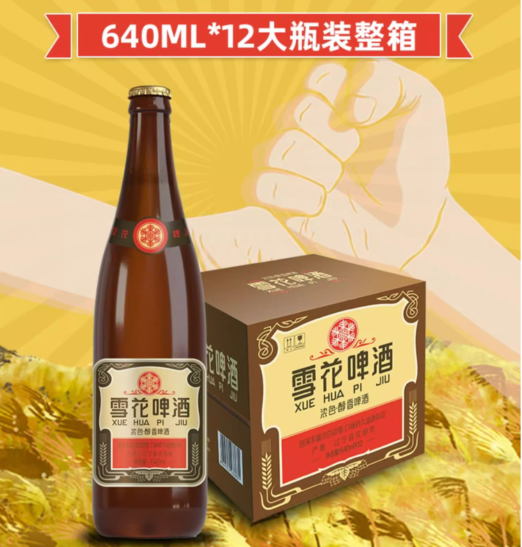 一瓶等于2两白酒!雪花啤酒 沈阳经典 老雪花 640mL*12瓶