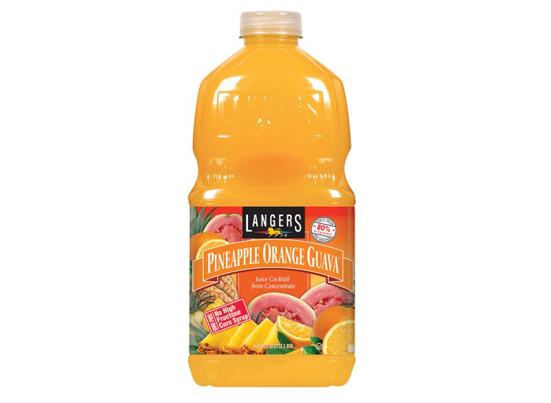 Langers这款菠萝橙番石榴汁也只有15%的真正果汁,主要由添加的糖和水组成,糖含量高达27g/240ml,碳水化合物31g/240ml,算起来比一片披萨还多…
