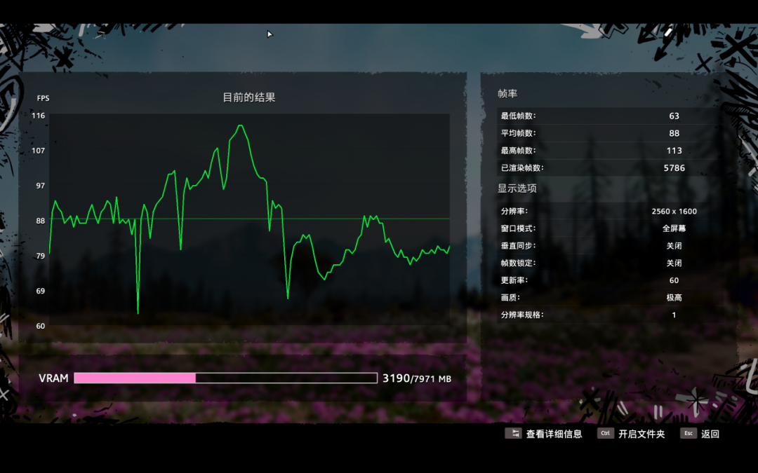 在其他3A游戏实测中,分辨率都设定在2K,《孤岛惊魂新曙光》极高画质下平均帧数88FPS。