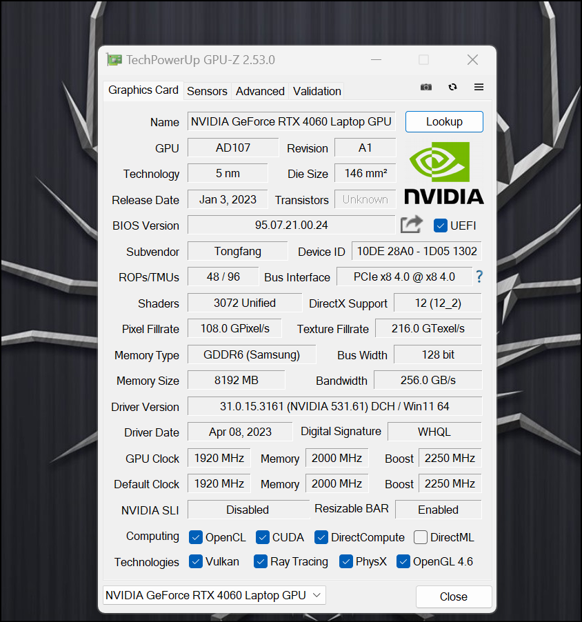显卡方面,依旧是喜闻乐见的满血版NVIDIA GeForce RTX 4060,2023年度真正意义的【甜点级独显】。
