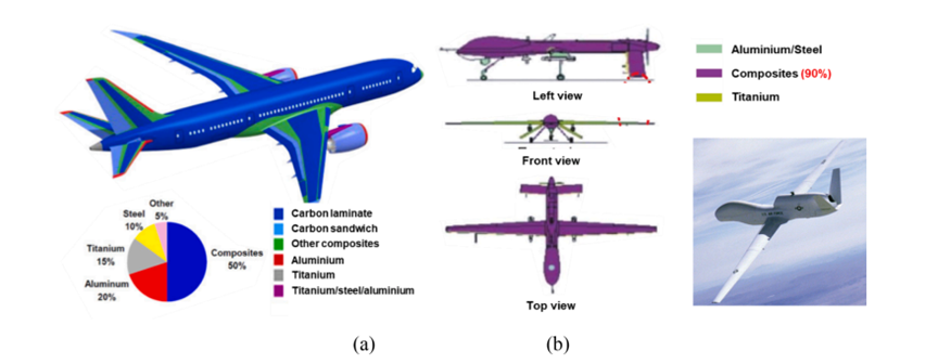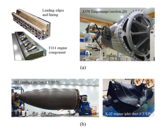 图6 (a)因瓦合金(b)复合材料作为模具材料的应用于航空航天工业实例