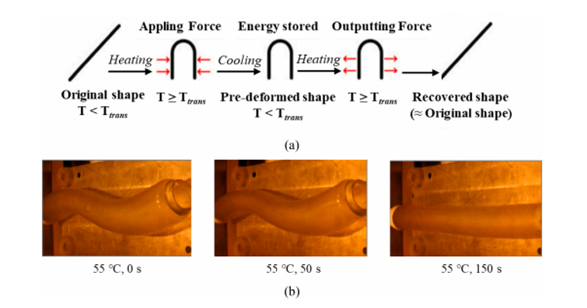 图8 (a)SMP的形状记忆效应(b)SMP模具用于风管部件的制造工艺