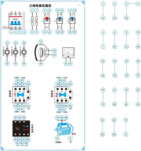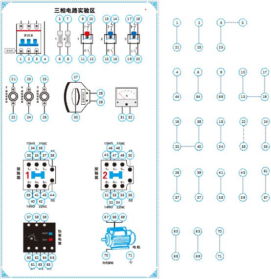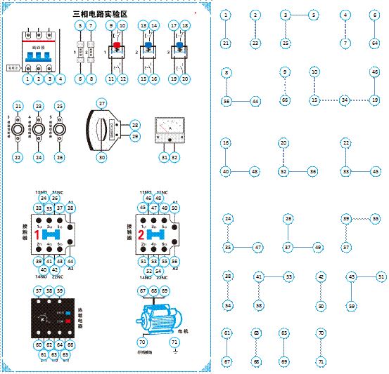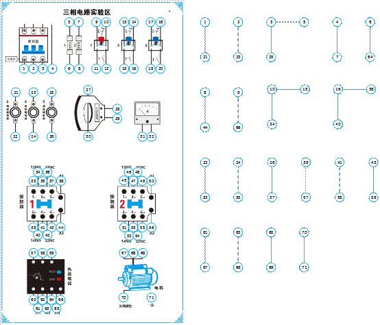 下方是您要作业要用到的电路图,请您按照实际中的安全作业要求,严格按照电路图,在考试台“三相电路实验区”区域,进行连线作业。线路连接结束后,点击“确定”按钮,进入下一步