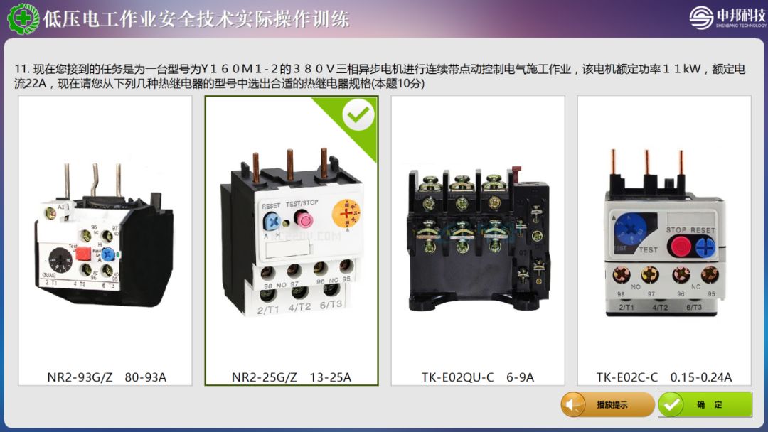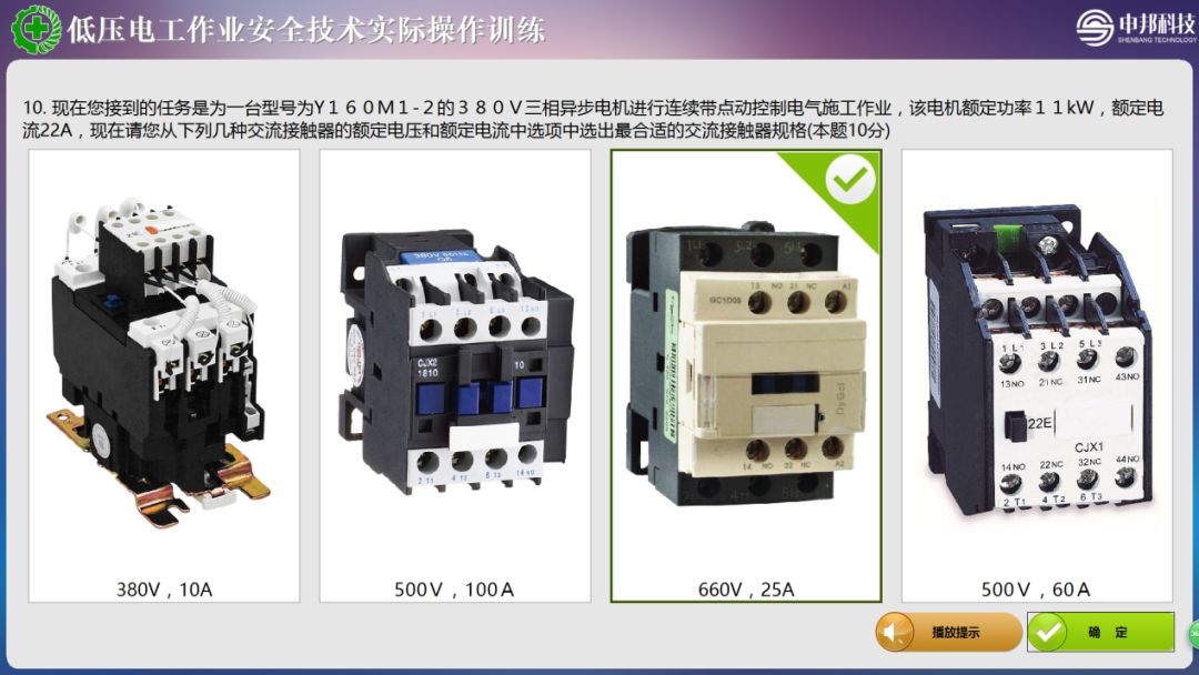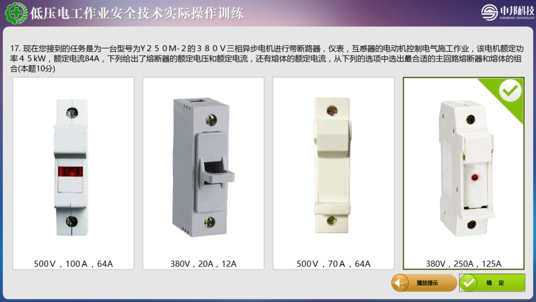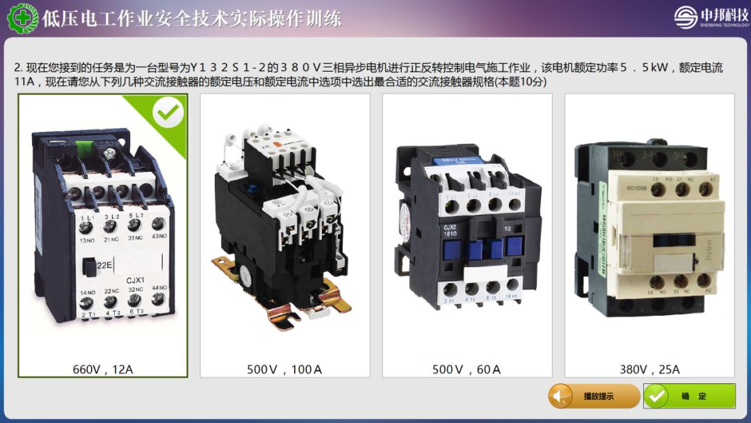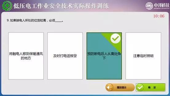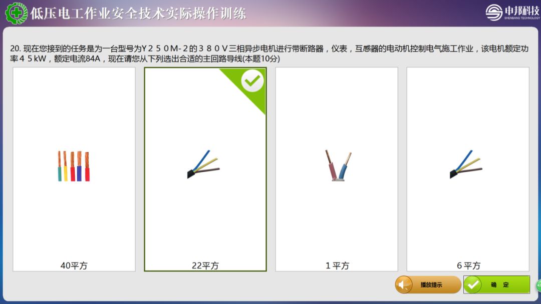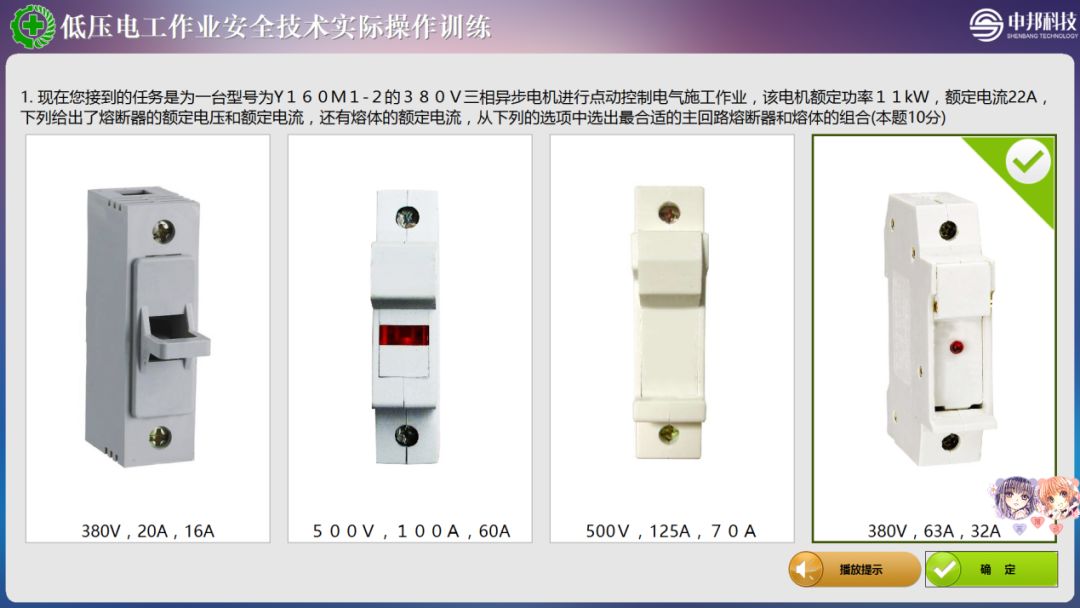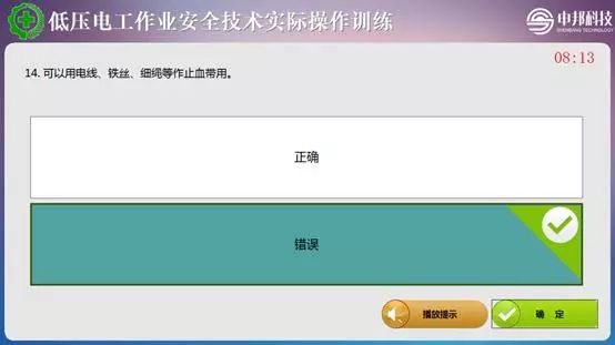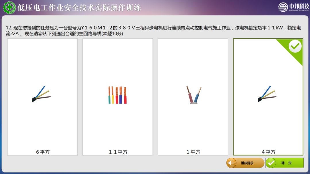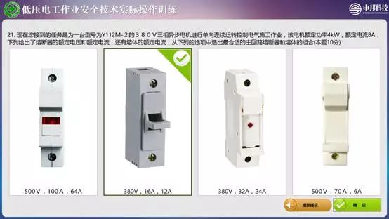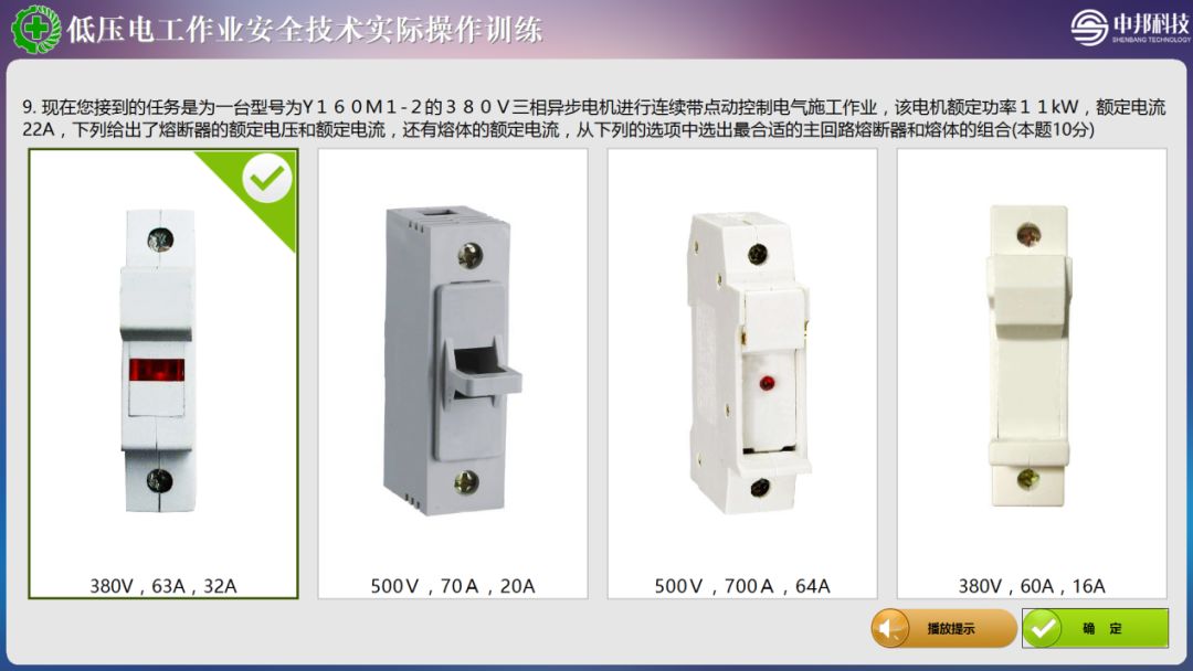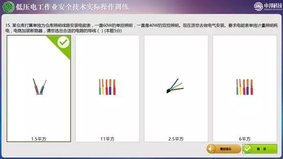 现在由您更换某车间照明线路开关,假如该车间线路不具备断电作业条件,请您从下列用具中选择需要使用的安全用具。方法是:点击选择要用的安全用具,选择结束后点击“确定”按钮。