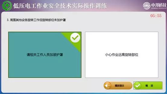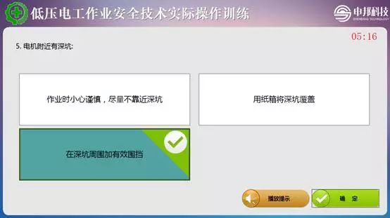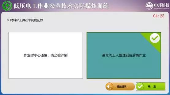 上图场景中有七种危险因素,用红色框标记的是危险因素,点击您找到的危险因素,危险因素就会消失,表示您找到危险因素了,您找到所有的危险因素后,确认无误请点击“确定”按钮进入下一题。