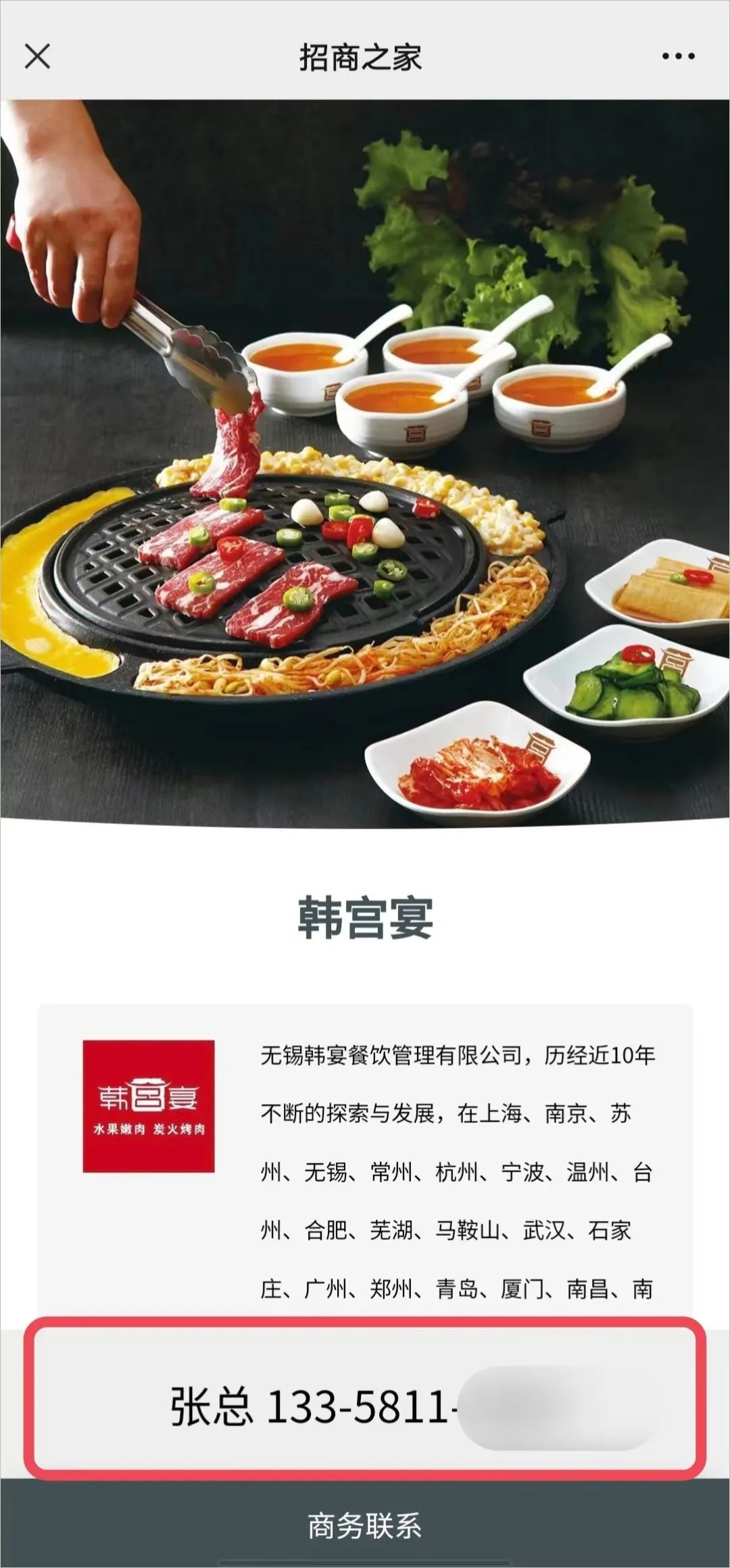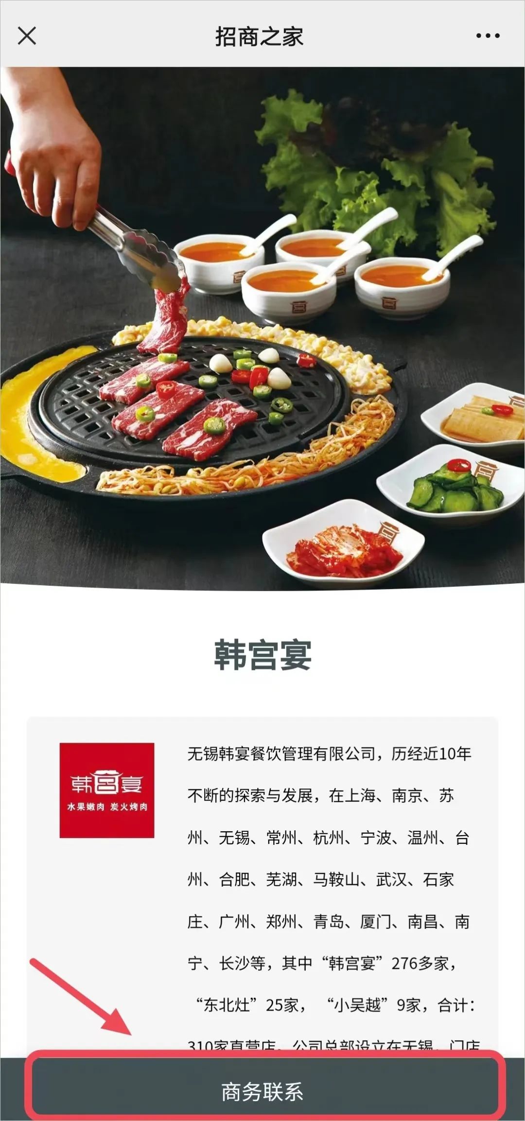 第六步:点击“商务联系”,即可查看品牌联系方式
