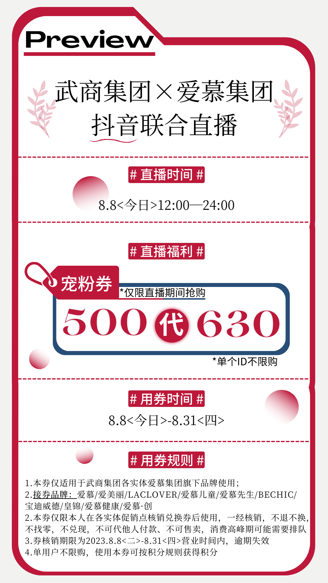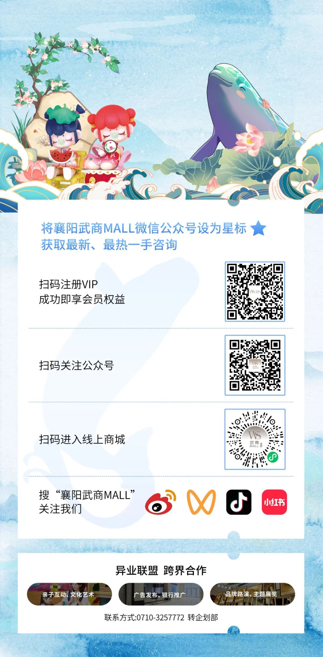 *本宣传资料相关内容不排除因未能控制的原因而发生变化,本宣传仅作为广告发布,以便客户了解信息参考使用,不构成襄阳武商MALL的要约邀请、要约或承诺,襄阳武商MALL将根据实际情况进行修改。本宣传资料仅供一般资讯用途,不存在任何专业意见,接收者如有任何疑问,应咨询相关专业人士的意见,以相关专业意见及实际情况为准。微信部分图片及文字,来源于其他公众平台与互联网网页,其目的是为了将更好的内容分享给更多人,版权依旧归原作者所有。如若有涉及侵权请予以告知,我们会尽快在24小时内删除相关内容,非常感谢。