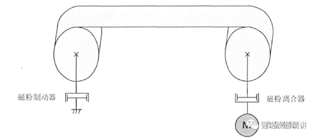 磁粉离合器由传动单元( 输入轴) 和从动单元( 输出轴) 组成。在两组单元之间的空间, 填有粒状的磁粉。当磁性线圈不导电时, 转矩不会从传动轴传于从动轴, 但如将线圈电磁通电, 就由于磁力的作用而吸引磁粉产生硬化现象, 并传动转矩至输出轴磁粉制动器与磁粉离合器使用如下图所示: