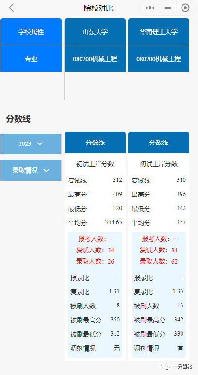 初试信息:部分学校录入了23年专业成绩分数情况,帮助大家直观了解该学校是否压分。