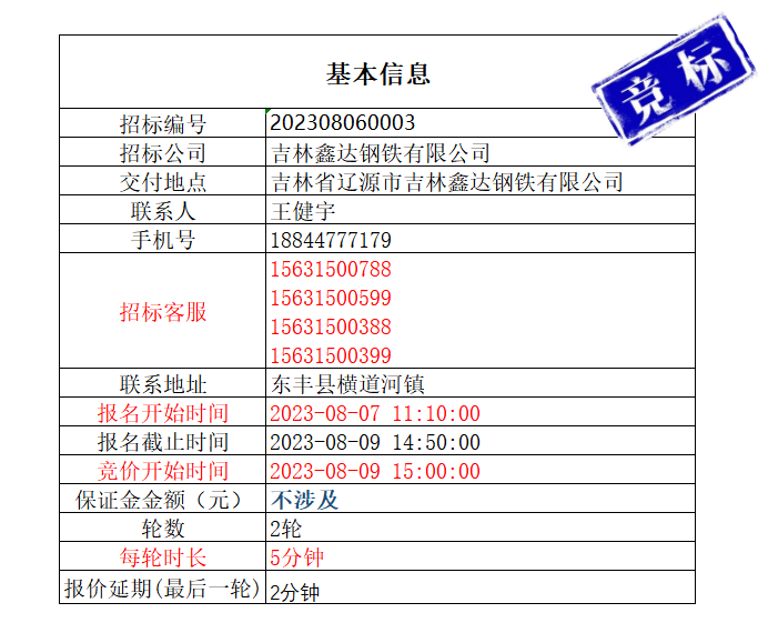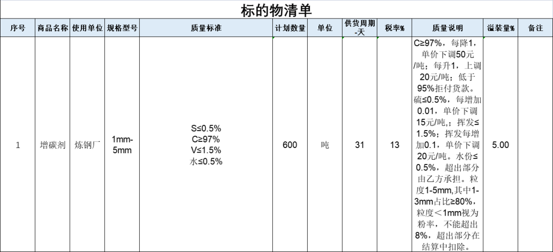 【招标公告】8月11日吉林鑫达钢铁有限公司增碳剂招标公告