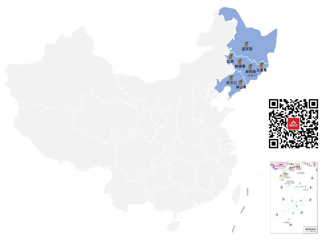 好卫口是鞍山市庆丰饮品有限公司旗下品牌,公司始建于1992年,是专业从事山植汁饮料研发、生产及销售的产销一体化大型民营企业。,是东北地区专业山汁研发生产型企业,主要生产“好卫口”山渣汁系列为主,蓝莓果汁为辅。白山市林源春生态科技股份有限公司始建于2007年1月18日,是一家国家级农业产业化龙头企业,其前身吉林省金汪酒业有限公司。依托丰富的蓝莓资源,生产各种规格的蓝莓汁,是东北颇具知名度的企业。大兴安岭百盛蓝莓科技开发有限公司成立于2007年,利用大兴安岭特有资源-野生蓝莓为生产原料,产品主要有野生蓝莓果汁饮料、野生蓝莓果干、蜜饯、蓝莓果酱、蓝莓果糕、野生蓝莓果酒等蓝莓系列产品。北京:汇源、福兰农庄、九龙斋、如果、源究所、信远斋、牵手、妙记