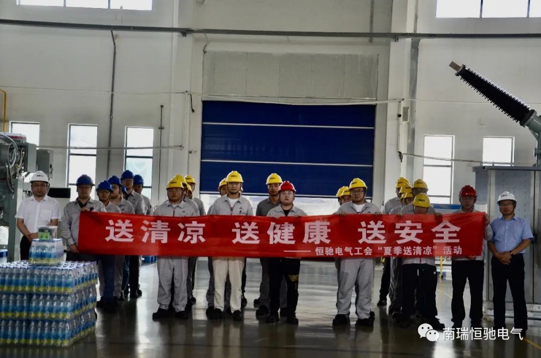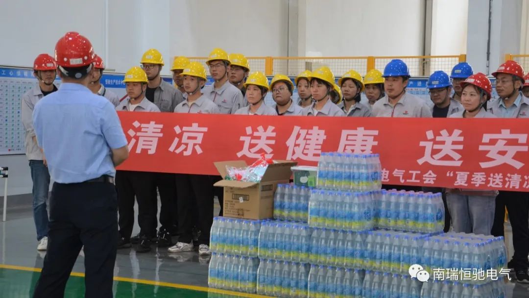 近日,持续高温给坚守在一线岗位的职工们带来严峻“烤”验。为切实做好高温期间一线职工防暑降温工作,关怀职工身体健康,日前,恒驰电气工会开展高温慰问活动,恒驰电气副总经理、工会主席周洪涛、总会计师江汉雄深入一线,为职工们送去清凉。