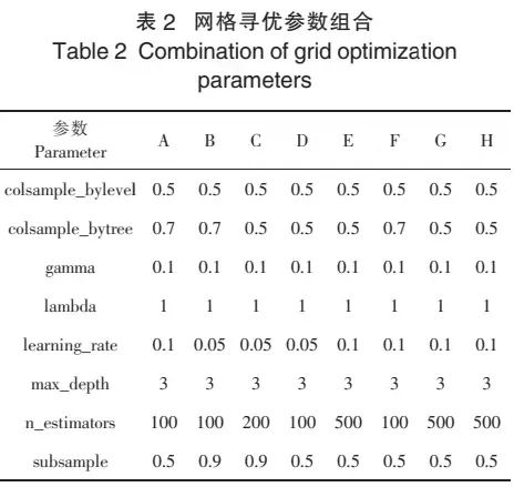 利用网格寻优调优方法分别对茶叶揉捻工艺中揉捻转速(A)、空揉时间(B)、一次轻压(C)、一次轻压时间(D)、重压(E)、重压时间(F)、二次轻压(G)、二次轻压时间(H)的参数进行网格寻优,其最优参数组合如表2所示。