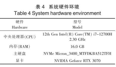 系统硬件环境和软件环境具体介绍如表4和表5所示。