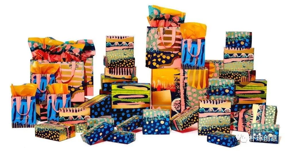 系列包装美妆礼盒包装采用了大胆而丰富的彩绘风格,将土著艺术元素融合其中。让礼盒包装更具艺术感和个性化,吸引了消费者的眼球。