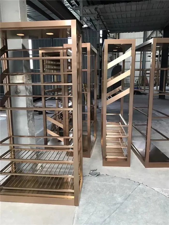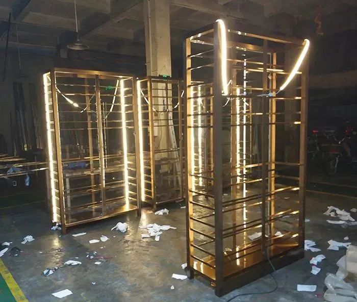 每一个不锈钢酒柜,不锈钢酒架,都可以按照客户要求而制作出不一样的风格,不锈钢酒柜订做,常用的酒柜 酒架电镀有玫瑰金,莆田不锈钢酒柜,拉丝玫瑰金,拉丝古铜,拉丝红古铜,镜面黑钛,黑钛亚光,镜面青铜,香槟金等颜色,也可以根据客户要求做出不一样的色彩。尚垚的不锈钢注重空间结构相结合的形式,打破以往空间环境关系的陈旧,创造出耳目一新的感觉,使人尽情舒展工作心情,充分利用不锈钢的特点使整个合二为一,让人一眼望去,感觉空灵通透,其结构牢固,同一个酒柜可以同时存放大量红酒,洋酒和国产酒品,还可以存放酒杯。