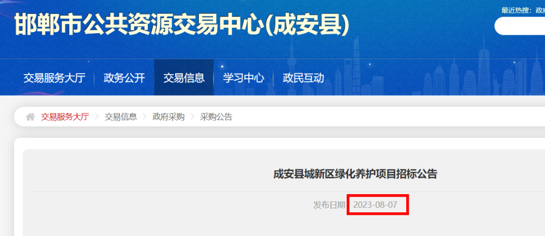 成安县城新区绿化养护项目招标项目的潜在投标人应在公共资源交易系统获取招标文件并于2023年08月28日 15时00分(北京时间)前递交投标文件。