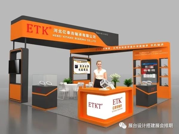 我们展览工程有限公司是五金工具展指定的展位设计搭建公司。在广州、深圳、上海、北京、天津、南京、成都、重庆、武汉、长沙、南宁、海南、香港等全国各主要展会城市均设有专门的展览制作工厂和专业的搭建施工团队。河北亿泰克轴承的展台面积:36.00m²,展台长宽:6.0米X6.0米,展台高度:4.0米,开口方向:四面开口。