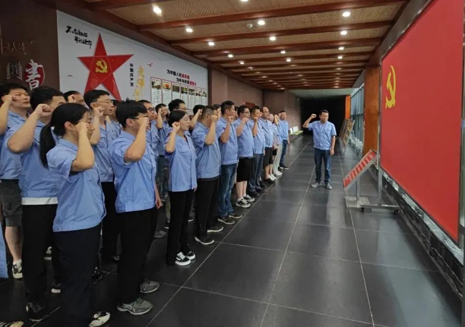 实景学习完成后,队员们走进宣誓厅,重温入党誓词。由李继锋同志领誓,党员同志们高举右手,面对党旗,郑重宣誓:“我志愿加入中国共产党,拥护党的纲领,遵守党的章程,履行党员义务,执行党的决定,严守党的纪律,保守党的秘密,对党忠诚,积极工作,为共产主义奋斗终身,随时准备为党和人民牺牲一切,永不叛党。”铮铮誓言,一字一句尽显赤诚之心。