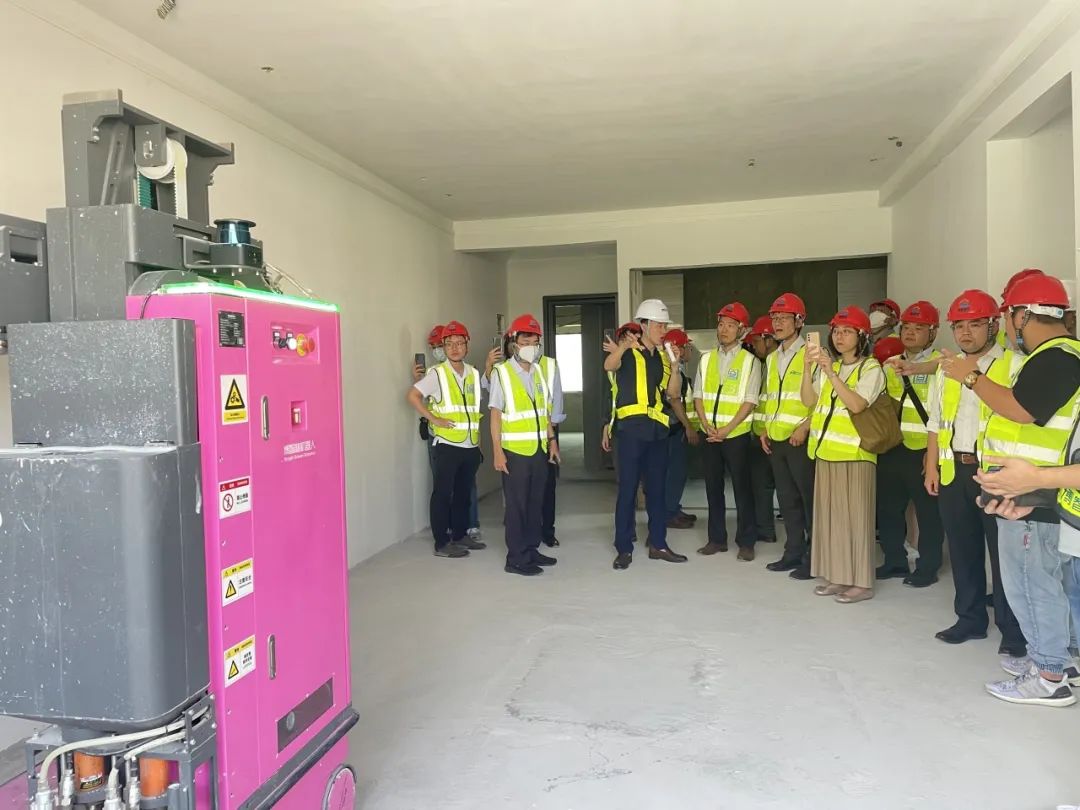 8月3日,香港特区政府机电工程署数码科技部总工程师李子傑及市政工程部总工程师潘星裕等一行到访博智林机器人总部,观摩建筑机器人施工情况,开展智能建造应用深度调研,博智林机器人公司测量机器人研究所所长陈刚、助理总裁林智斌等陪同出席。