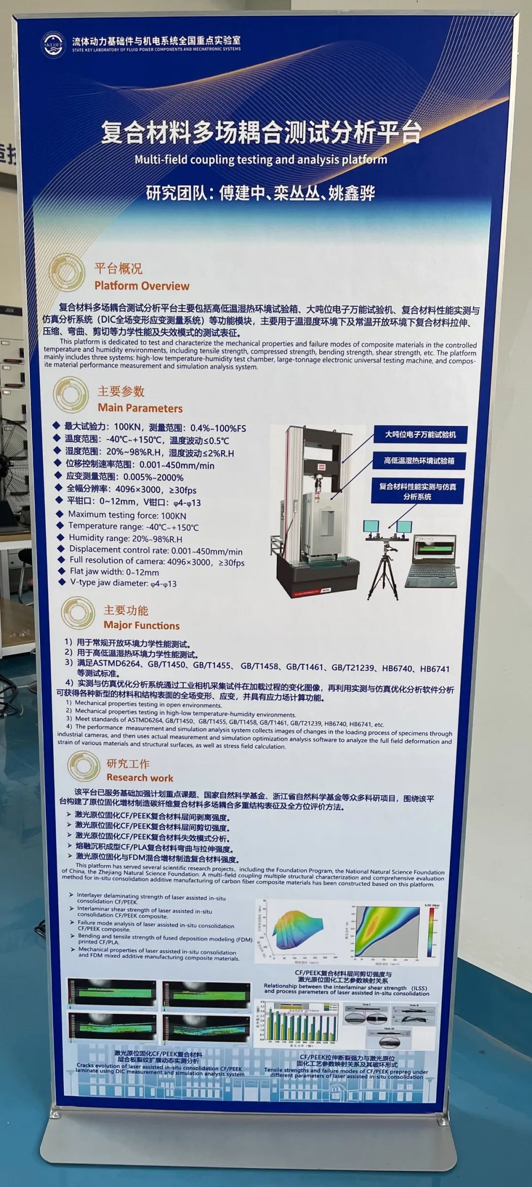 在航空航天领域,复材材料的应用是越来越普遍,占比越来越高,同时对其力学性能提出更高的要求。为了缩短研发周期,更高效的研究复合材料在多场耦合下的各项异性的力学性能,实验室引进比利时MatchID-2D/Stereo实测与仿真优化分析系统。MatchID-2D/Stereo实测与仿真优化分析系统作为流体动力基础件与机电系统全国重点实验室重点建设的复合材料多场耦合测试分析平台中的重大先进仪器设备。