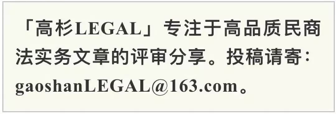 2014年1月至今,「高杉LEGAL」长期致力于中国民商法实务研究,高杉峻(个人微信:gaoshanlawyer)出品。
