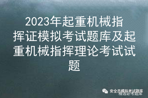 2023年起重机械指挥证模拟考试题库及起重机械指挥理论考试试题是由安全生产模拟考试一点通提供,起重机械指挥证模拟考试题库是根据起重机械指挥最新版教材,起重机械指挥大纲整理而成(含2023年起重机械指挥证模拟考试题库及起重机械指挥理论考试试题参考答案和部分工种参考解析),掌握本资料和学校方法,考试容易。起重机械指挥考试技巧经过题库老师和起重机械指挥已考过学员的汇总,相对有效而可行的复习方式就是对起重机械指挥的试题攻克,进行多方面的试题训练。2023起重机械指挥证模拟考试题库及起重机械指挥理论考试试题个人、培训学校进行考试前有效训练,确保学员学习后能顺利通过考试。