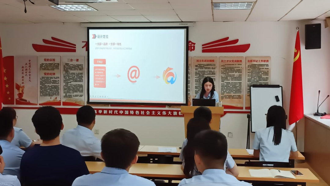 党建品牌及logo确定后,党支部开展形式多样的活动,对党建品牌及含义进行巩固深化和推广宣传,发挥党建品牌的辐射带动作用。支部党员王晶晶同志充分发挥党员的责任感使命感,讲授“党建品牌宣传”专题党课,为部门员工讲解党建品牌及含义、logo设计特点及设计理念,使支部党建品牌深入人心。