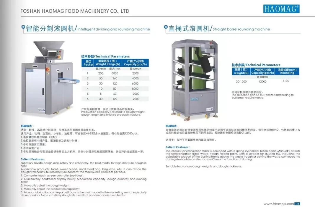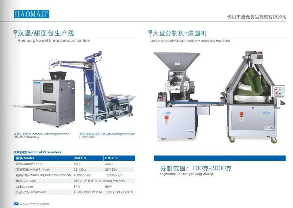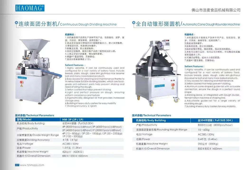 连续面团分割机、锥化滚圆机、翻缸和面机...专业制造商!产品还有高速排盘机、中间醒发机、面包整形机、智能6P分割滚圆机、全自动丹麦生产线、扎花机、鸡蛋自动分离器等