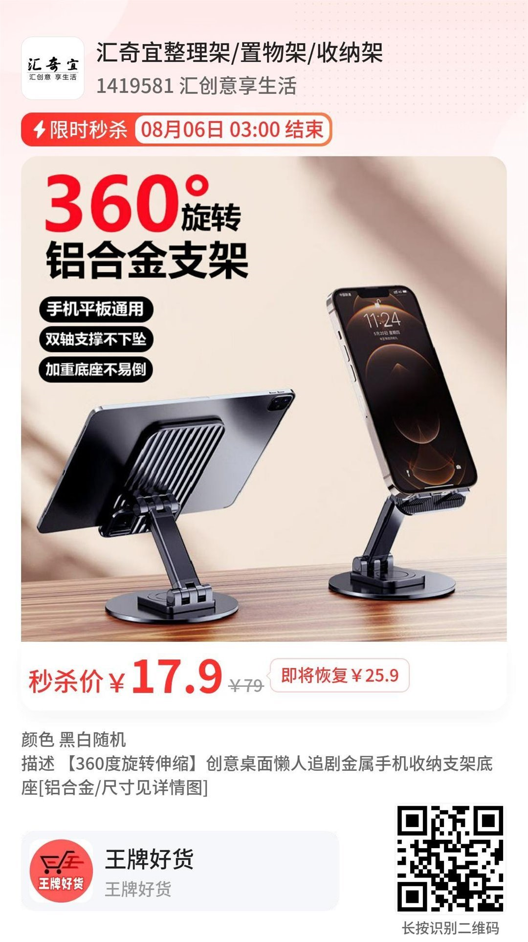 360°旋转铝合金手机支架