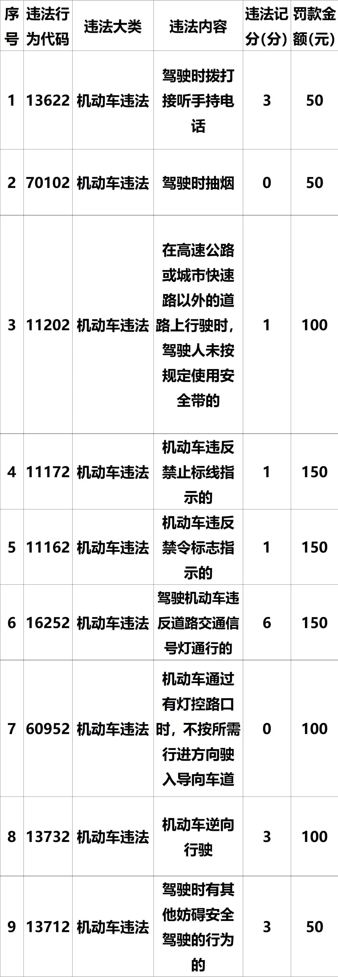 2、违法代码1625:驾驶机动车违反道路交通信号灯通行的;