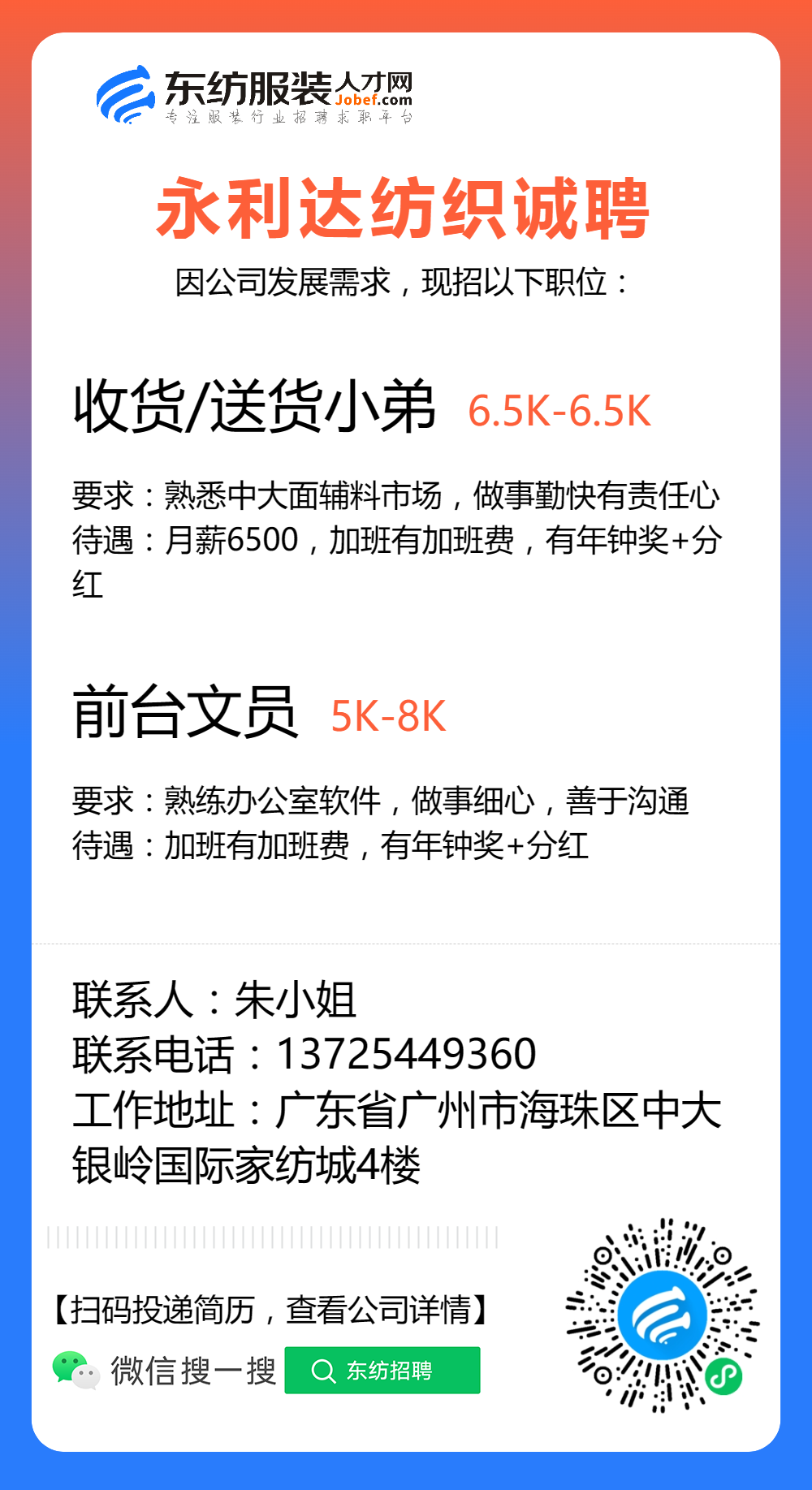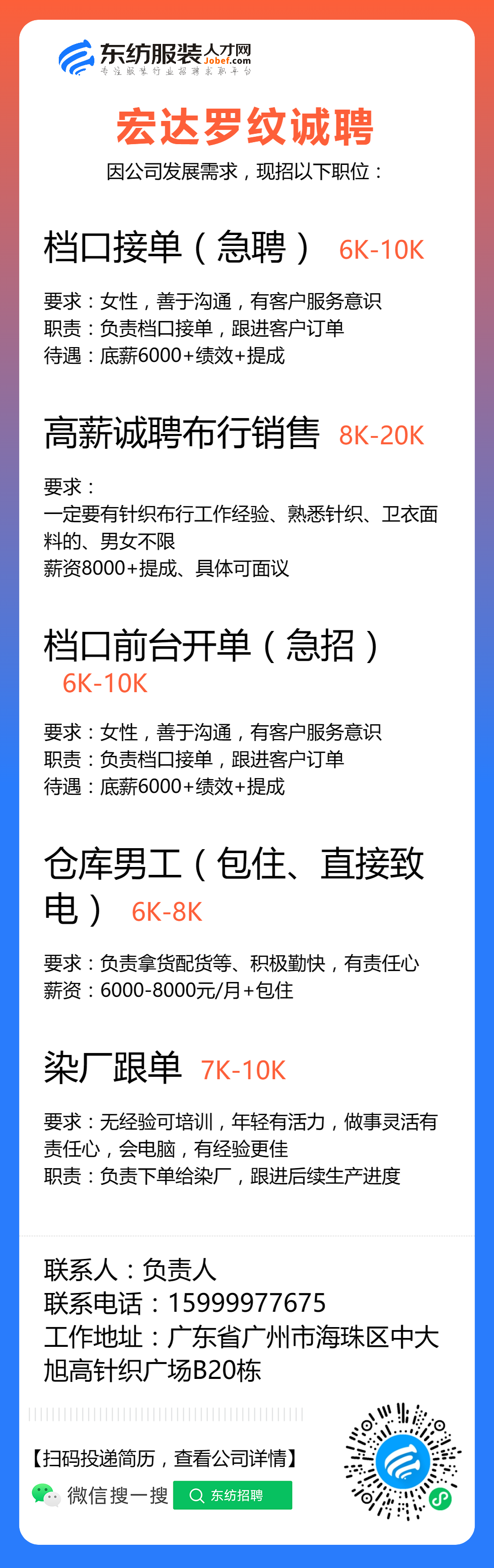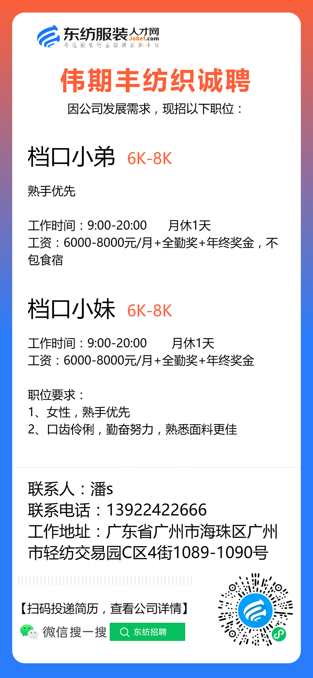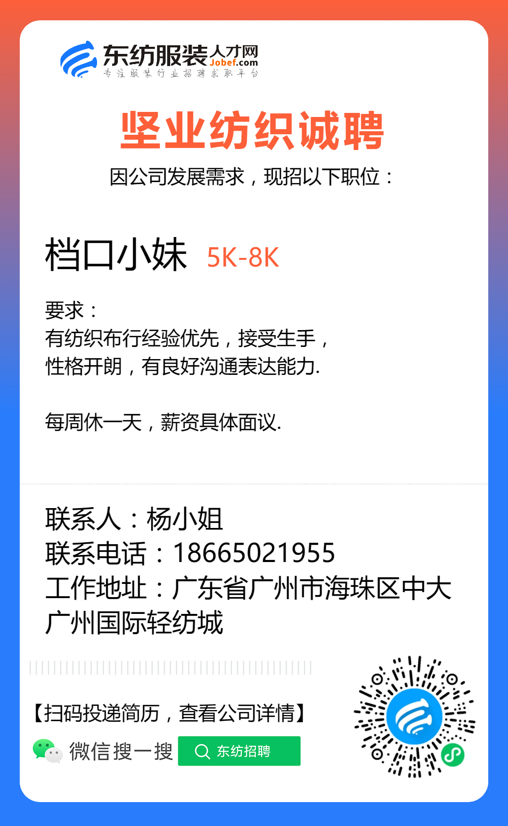 服装招聘·布行类丨8. 8 号,验布员、布行销售、质检员……