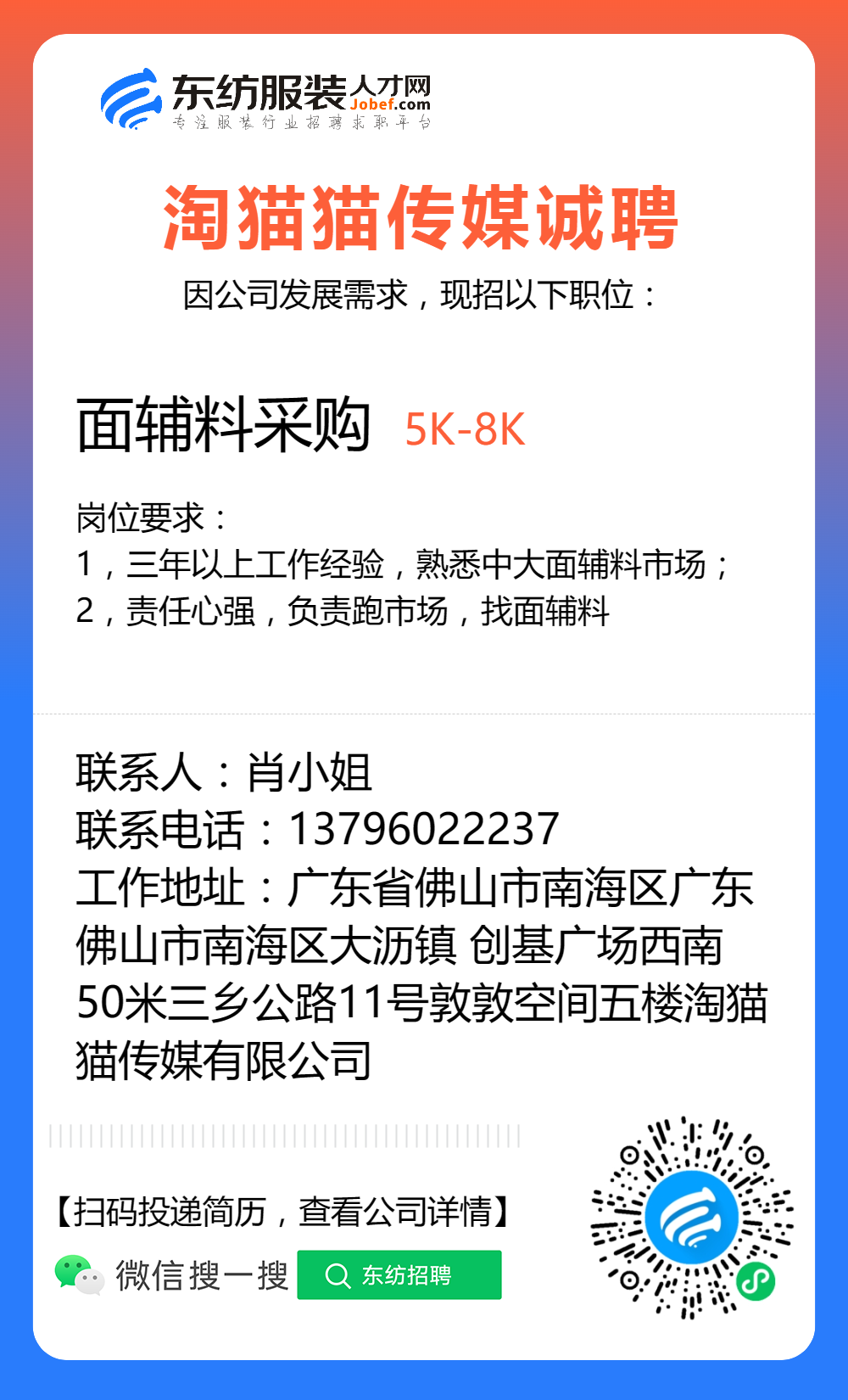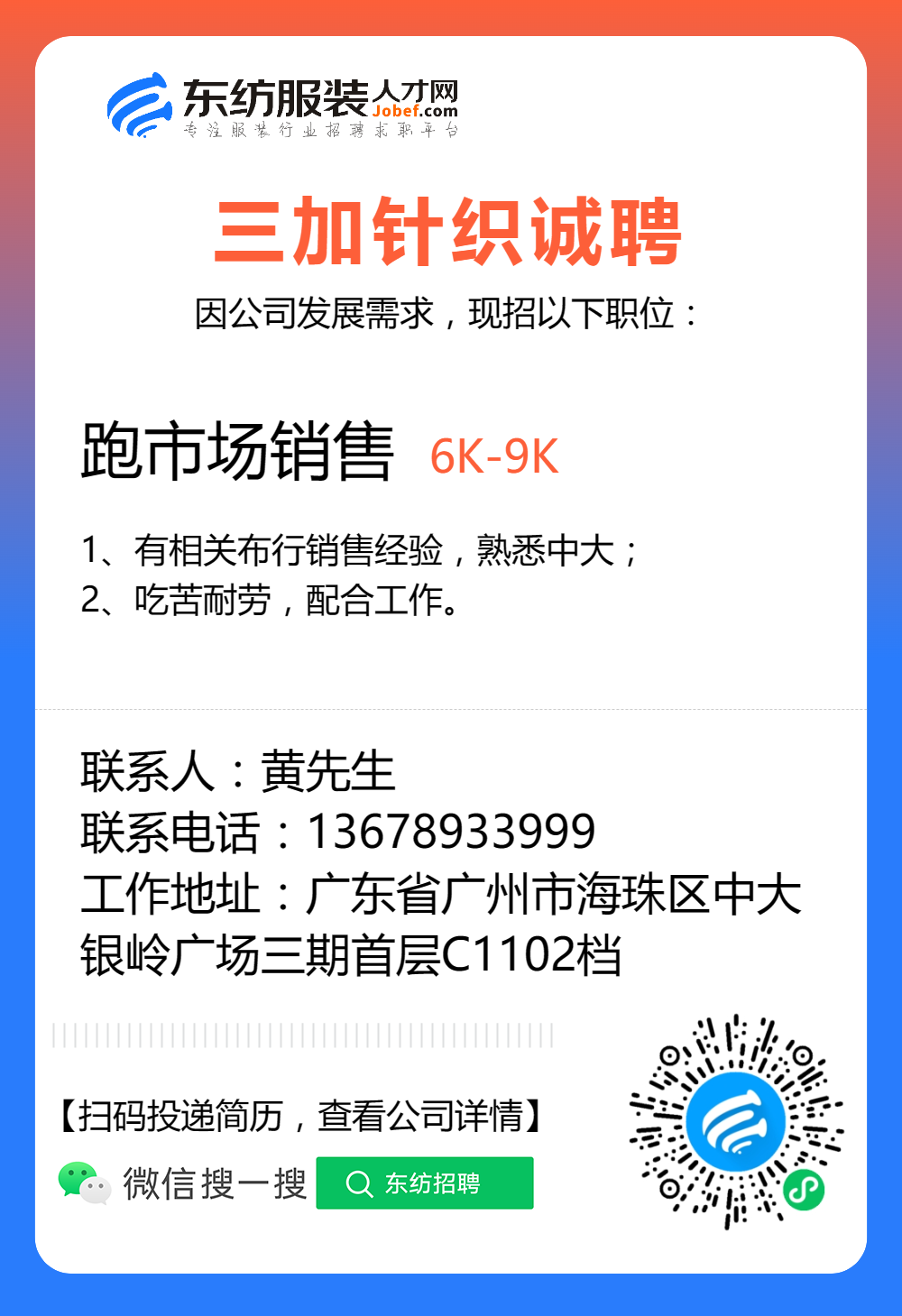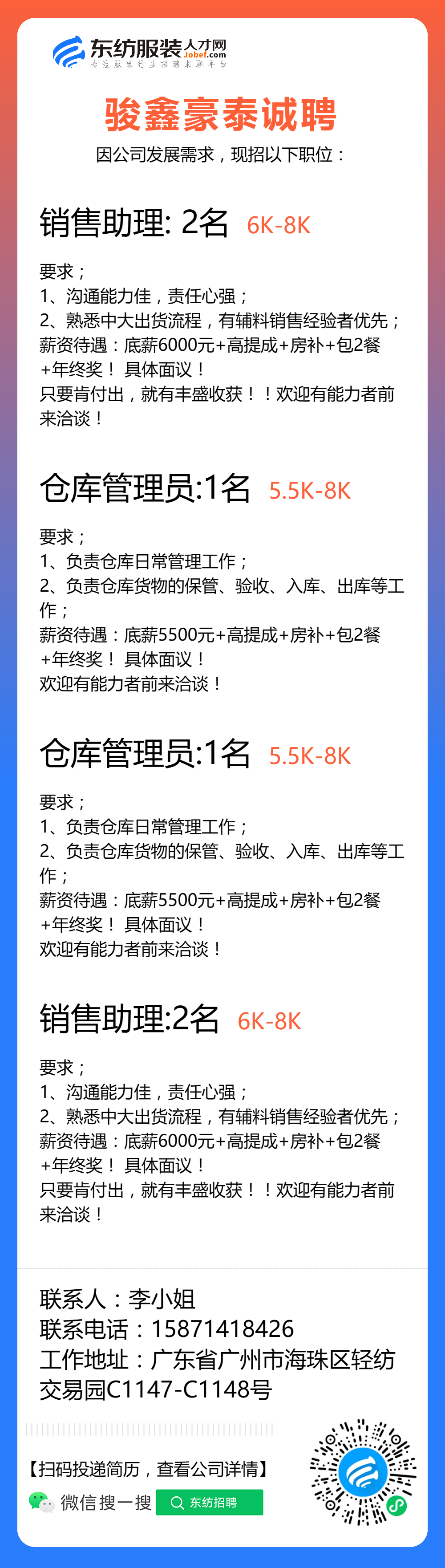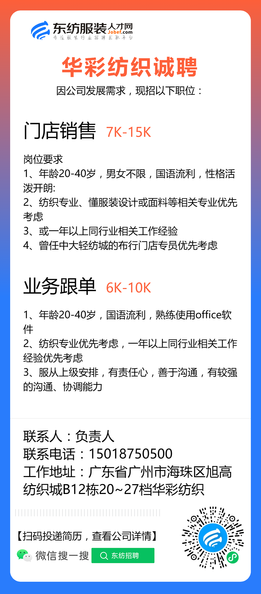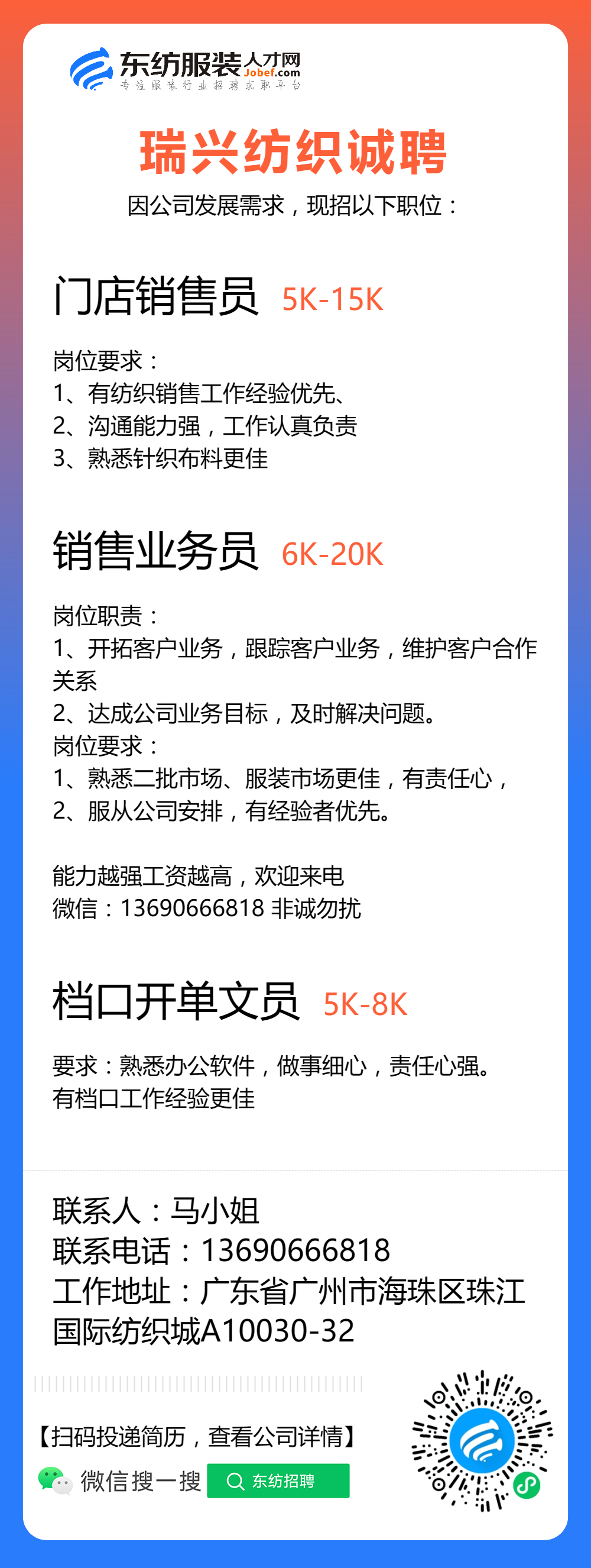 服装招聘·布行类丨8. 8 号,验布员、布行销售、质检员……