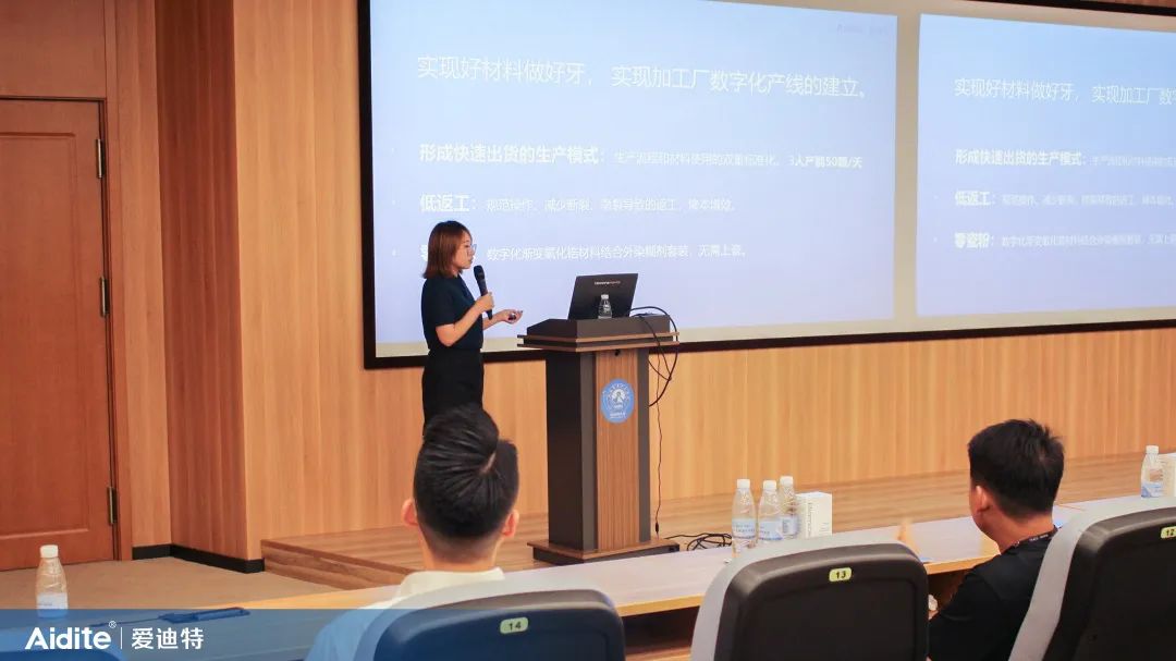 爱迪特技工事业部综合服务部经理白春后与大家一起分享了数字化转型落地经验、方法。以目前爱迪特“绚彩100颗数字化产线”为例,可以形成快速出货的生产模式,并且可以实现低返工、零瓷粉,帮助义齿加工厂持续提升生产、管理、创新能力取得成功,将挑战转化为机遇。