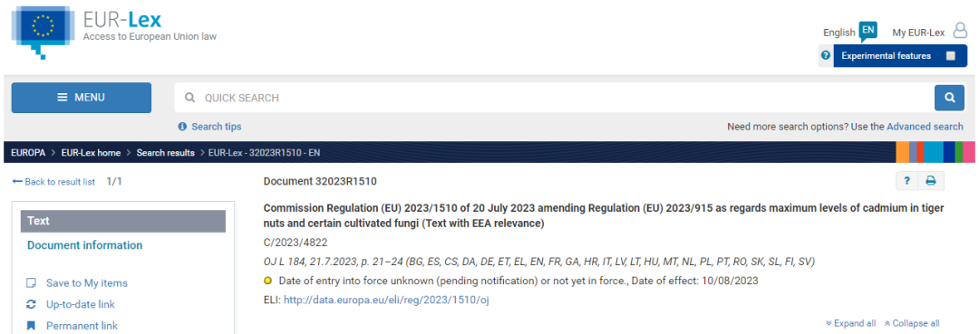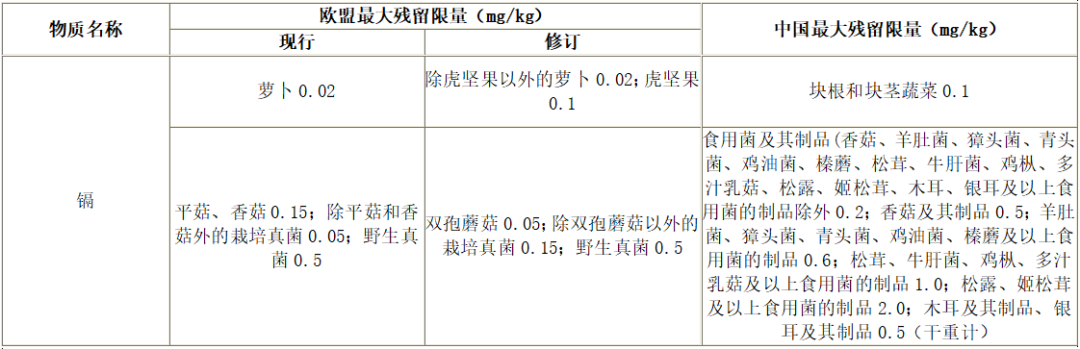 据欧盟官方公报消息,2023年7月21日,欧盟委员会发布(EU)2023/1510号条例,对(EC)2023/915号污染物限量法规附件的第3节(金属和其他元素)进行修订,修订镉在部分坚果和某些栽培真菌中的最大残留限量。修订内容如下表: