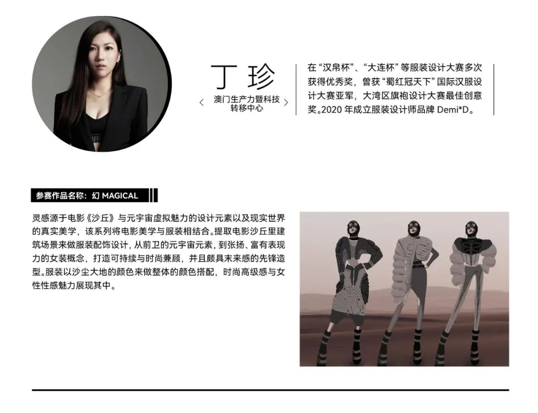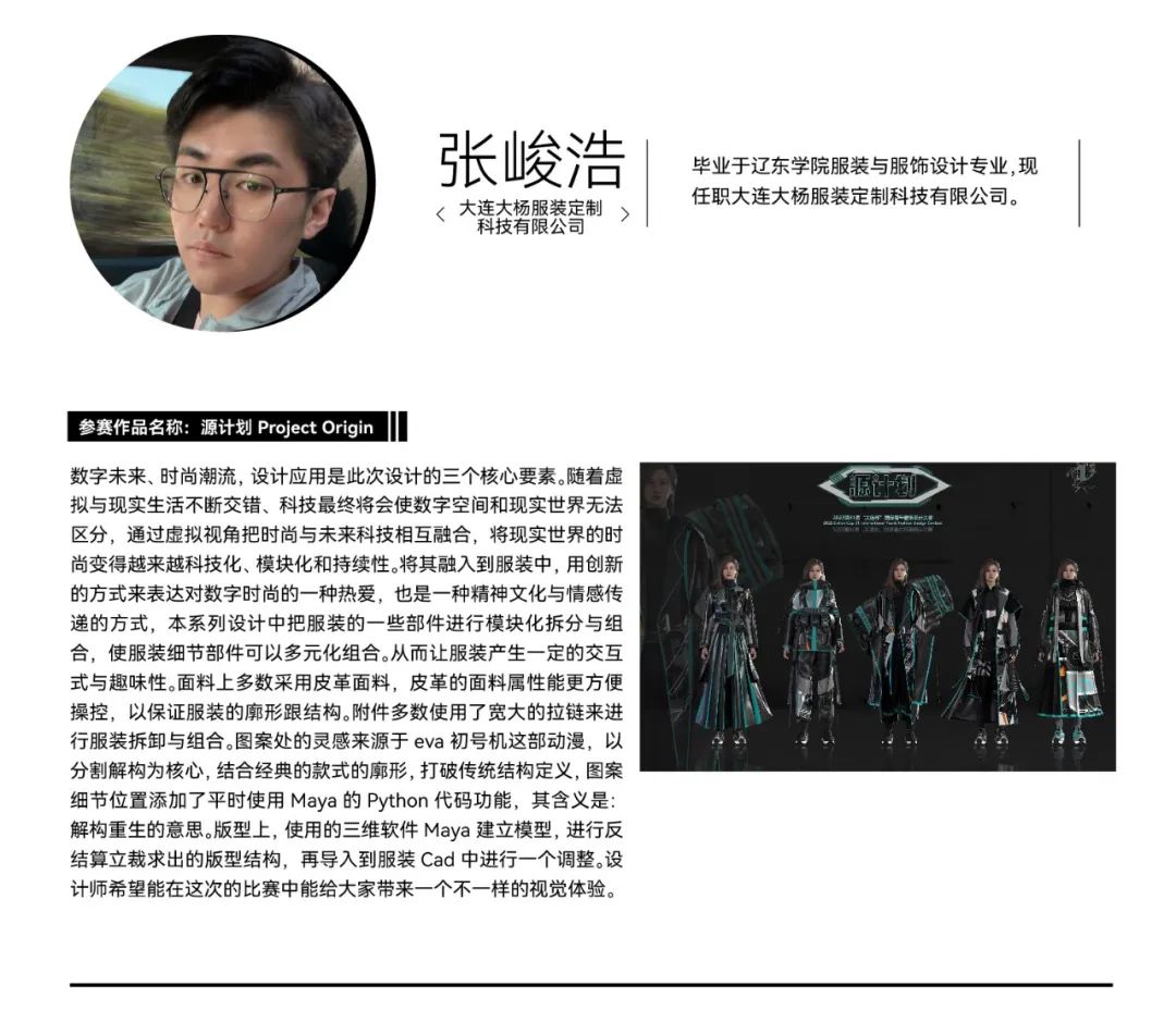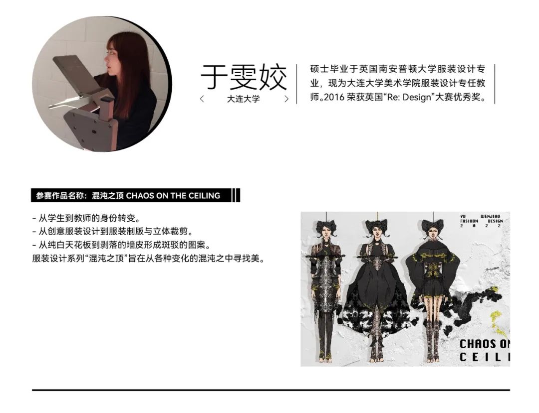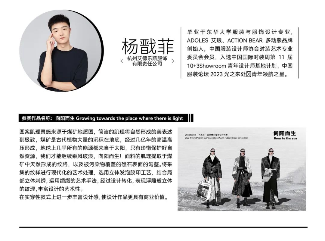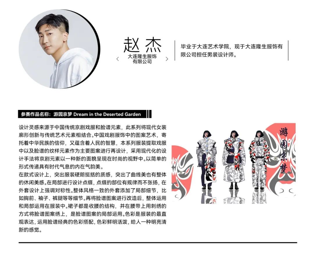 作为青年服装设计师的摇篮,“大连杯”国际青年服装设计大赛不断挖掘、扶持优秀青年设计师,推动青年设计师突破自我,为青年设计师提供发布作品的舞台,助力时尚行业进步向前。本届“大连杯”共有38组设计师作品入围决赛,本期为大家介绍职业组的19位选手(排名不分先后)。